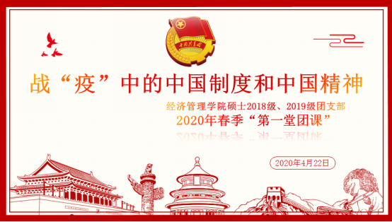 2020年4月22日,为了进一步增强学生的责任意识和担当意识,鼓励同学们感恩奋进,做一个有本领,有担当的中国青年,402永利集团官网入口团委组织硕士2018级、2019级团员青年开展了以“战‘疫’中的中国制度和中国精神”为主题的“开学第一堂团课”线上主题教育活动。本次团课由辅导员王晓俊主持,硕士2018级、2019级全体学生参加了主题团课学习。