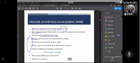 2021年9月4日下午,为加强科研诚信和学术道德建设,402永利集团官网入口面向研究生新生组织开展了学术道德讲座。根据疫情防控的要求,本次讲座在线上开展。讲座邀请了402永利集团官网入口林楚彬老师担任主讲人。林楚彬老师以其风趣幽默的风格和一丝不苟的治学态度广受同学们的喜爱。讲座开始后,林老师首先提出诚信科研,要求同学们遵守学术准则和规范,树立学术道德观。研究生学习阶段是从事科学研究的开始,因此更应该养成好的习惯。随后,林老师就如何发表一篇论文对研究生新生们进行了细致的讲解。从选定主题开始,到具体研究,再到写出初稿,如何一遍遍修改,最后投到期刊。学生们对这件研究生阶段必经之事尤其关心,也因此听得极为认真。在此过程中,林老师毫不吝啬地分享自己的投稿经验,同学们直呼干货满满。作为刚踏进研究生阶段的新生们,未来能否在学术研究方面大放异彩仍未可知,但经过这节通向学术大门的第一课,402永利集团官网入口的研究生们必然谨记学术道德,努力科研,在学术的道路上愈行愈远。