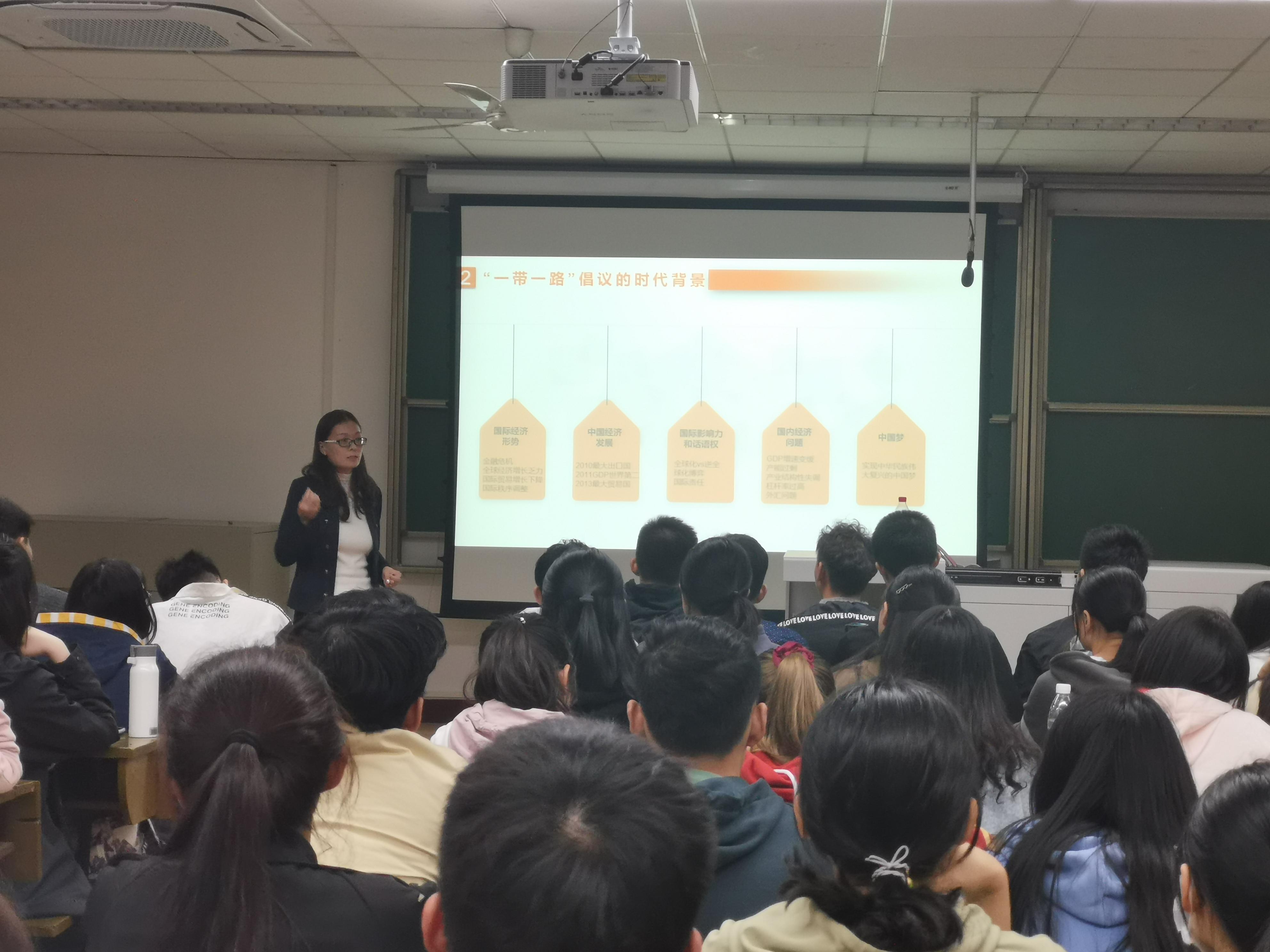 讲座开始时,黄缘缘老师通过介绍丝绸之路的发展历程并结合我国国情以及国际关系讲解“一带一路”倡议对我国、对构建人类命运共同体的重要作用,让同学们对国内外形势与我国提出的“一带一路”倡议的决策背景有了基本的认识。
