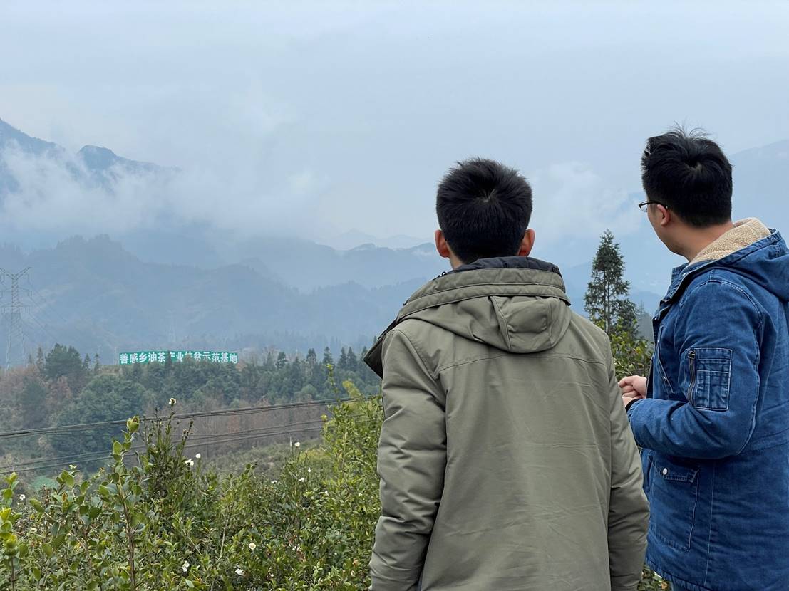 在善感乡党委委员、宣统委员陈琳的带领下,实践队走访调研了油茶柑橘和西瓜三类经济作物的情况、产业发展与农户利益联结等情况,重点参观了善感乡重点作物油茶产业扶贫示范基地。陈琳委员在谈到全乡乡村振兴情况时指出:“我们的定位就是‘一带一环几个点’,‘一带’就是乌江画廊旅游示范带;‘一环’就是乡村产业融合发展环,‘几个点’就是油茶、柑橘等多点散养的特色产业,重点是要建立起产业与群众利益的联结机制。”队员们还同随行的邓书记深入探讨了西瓜的大棚规模种植优化方法,得到了邓书记的赞许。陈琳委员表示,产业振兴是乡村振兴的物质基础,善感乡持续做大做强做好特色产业基地,发展特色种养殖和经果林产业,做好产业技术提质增效,做强乡村振兴产业。