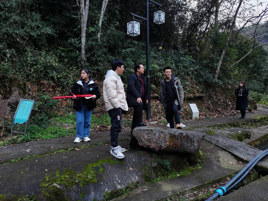 1月10日下午,在驻村社工文浩和秦青青陪同下,实践队一行到达了彭水县全域旅游示范村、乡村振兴示范点——善感乡周家寨村。队伍一到周家寨村,就受到了村委书记白绪权和驻村第一书记王涛等的亲切接待。在村综治专干董纯和的带领下,实践队参观了中央外办定点扶贫周家寨示范项目区、周家寨国家3A级旅游景区。怪石迷宫、水月洞天、玉龙神剑、生态农业观光园、滨江公园等景点和登山健身步道、民俗文化广场、钓鱼基地等休闲娱乐场所带动了当地民宿产业发展,景点连成一体,实现联动和谐,让人流连忘返。董纯和专干表示:“这里确实很有开发潜力,假期时能活跃周边不少民宿。”