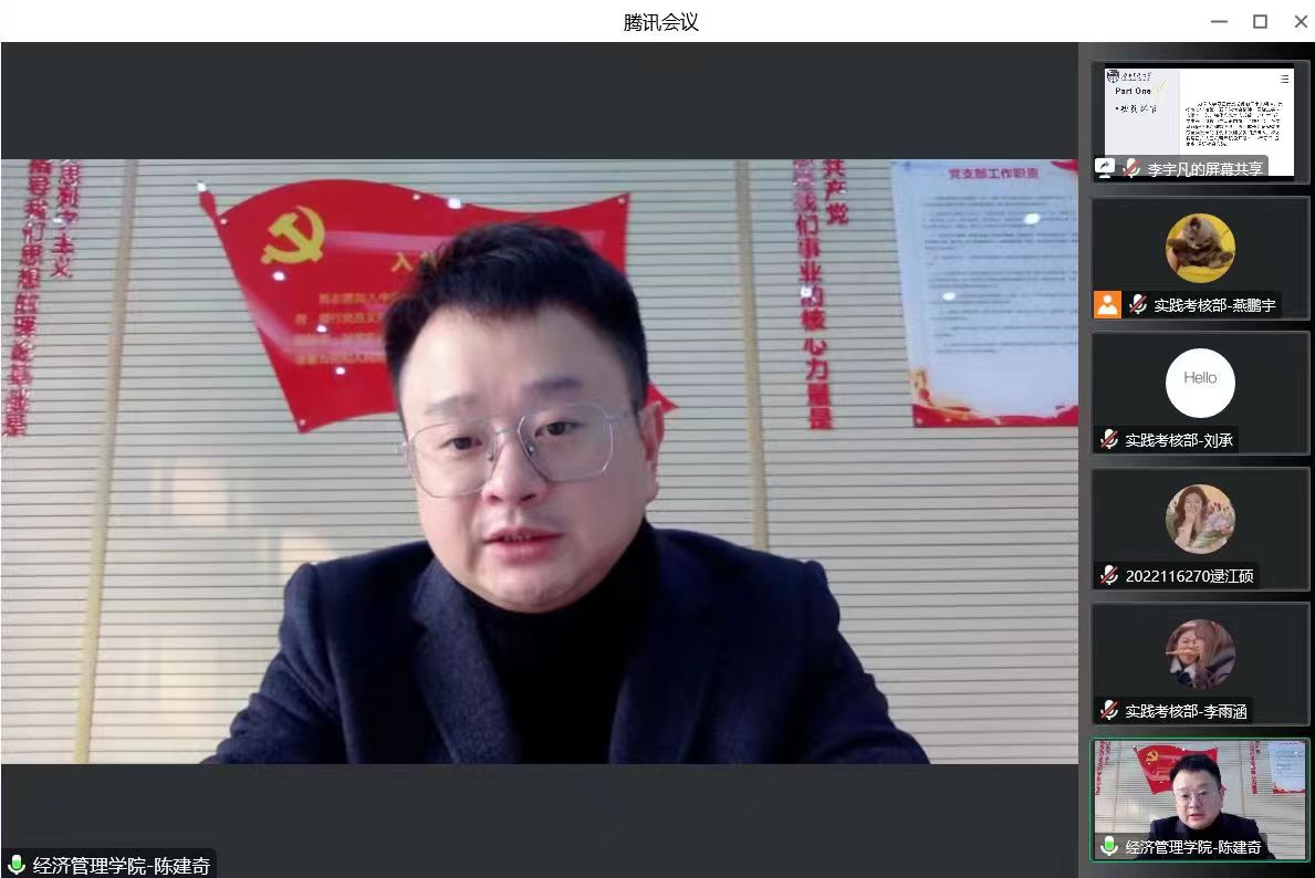 402永利集团官网入口团委积极响应学校号召,精心组织、周密安排,成功申报并立项多支校级、院级和专项队伍。2023年1月5日上午,402永利集团官网入口寒假“返家乡”调研社会实践安全培训暨动员大会在线上举行,学院团委副书记陈建奇、青年志愿者协会干部以及15支校、院级及专项队伍一起参加了大会。