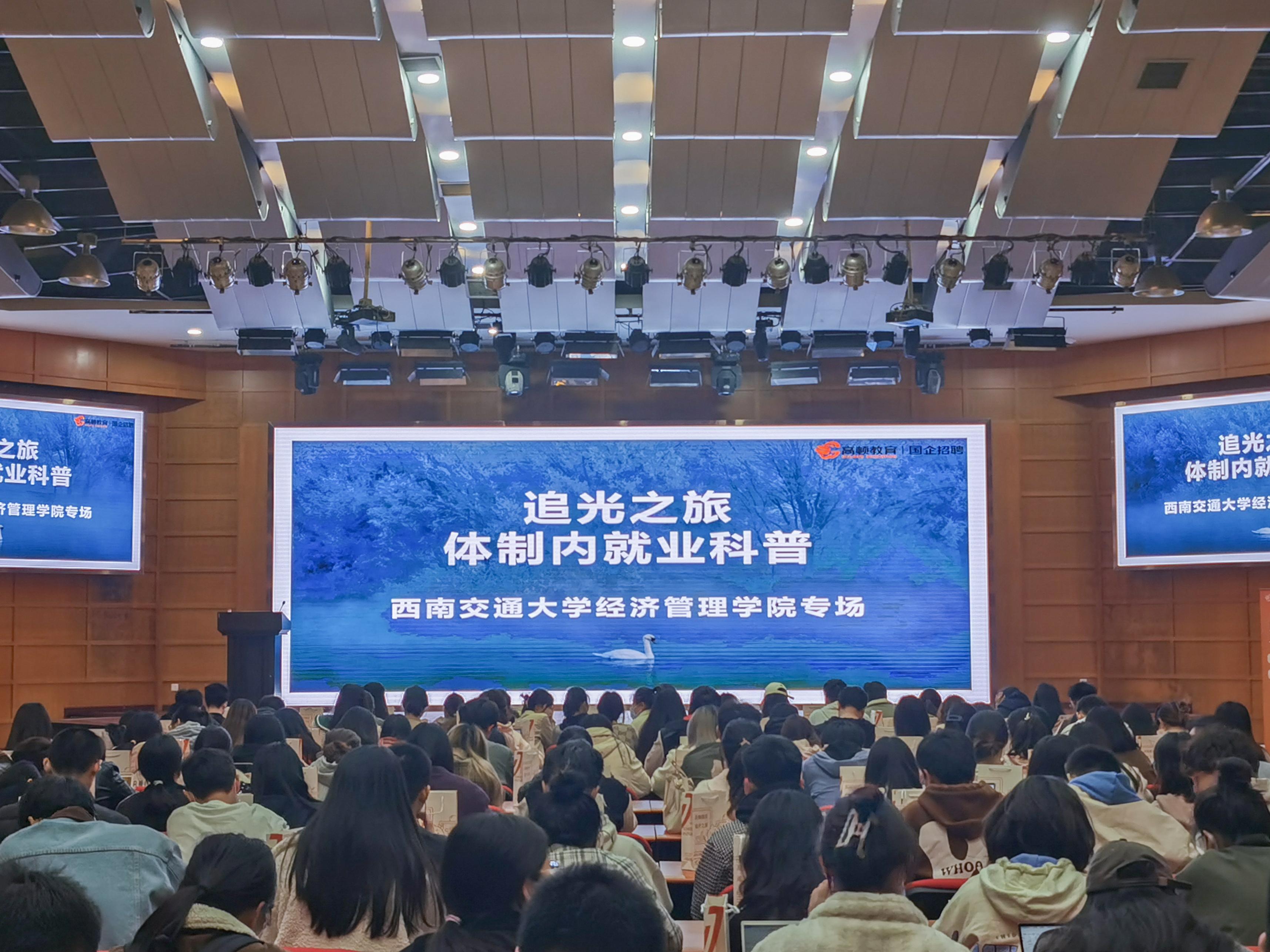 2023年3月21日,402永利集团官网入口在九里校区国际会议厅开展了体制内就业科普讲座。本次讲座邀请了高顿教育的樊磊老师作为讲师。樊磊老师讲解了国有六大行、三大政策行、石油、烟草、三大运营商等国有企业的招聘时间、具体招聘要求及招聘流程,帮助同学们破除信息差。同时他呼吁同学们自信展示自身优势,增强竞争力。