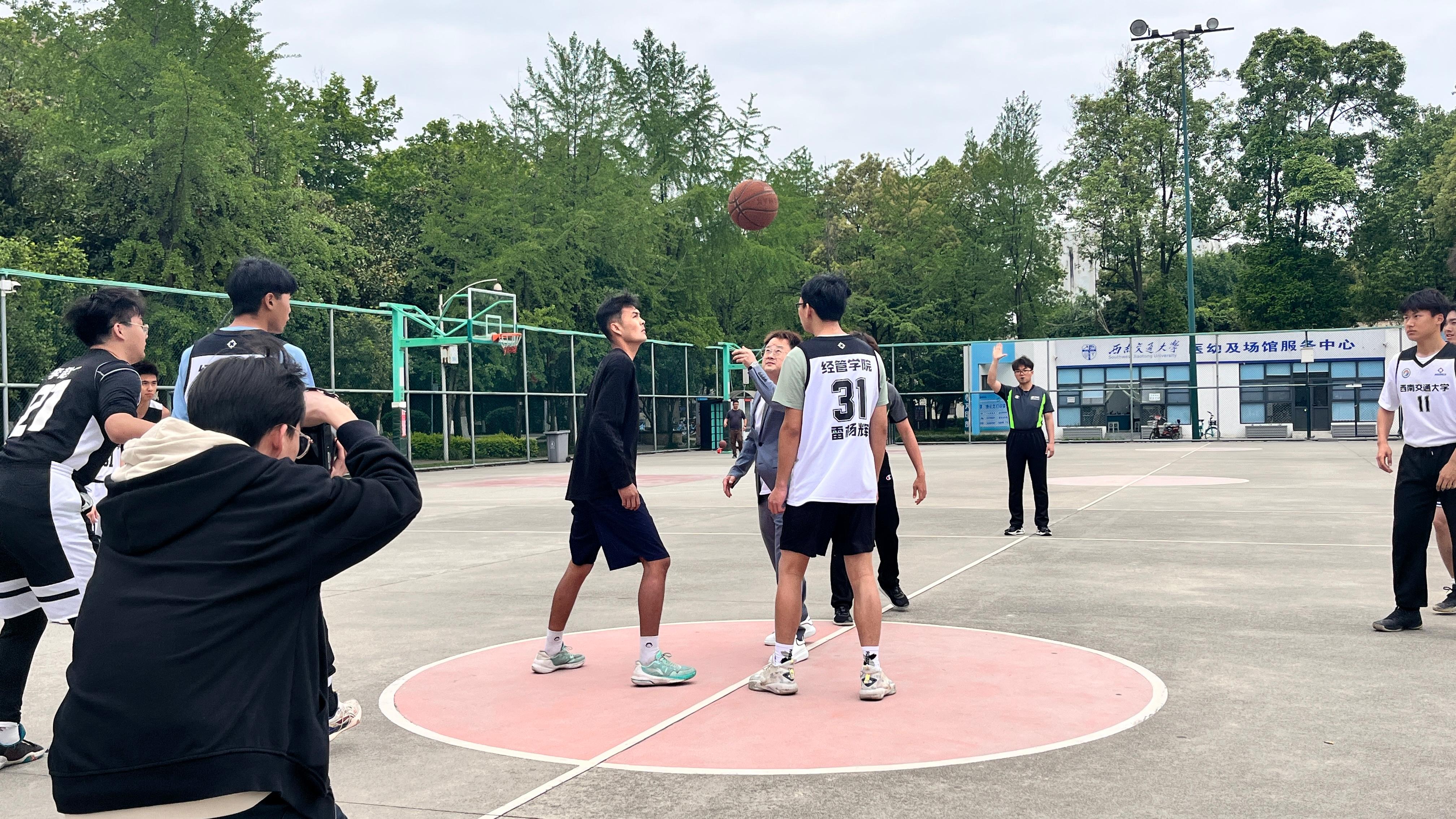 在热烈的掌声中,杨宏毅老师、陈建奇老师为揭幕战的两场比赛开球。哨声响起,激烈的角逐即刻展开。比赛场上气氛紧张而热烈,欢呼声此起彼伏,双方队员你争我夺、穿插跑位,挡拆掩护、突破传球,充分展现了“交子”们敢闯敢拼、开拓进取的青春风采。激战过后,有点is队以56:49战胜镜湖大乌龟队,梅狸猫开Amagi的门队以67:23战胜经管研究生2队,揭幕战圆满落幕。