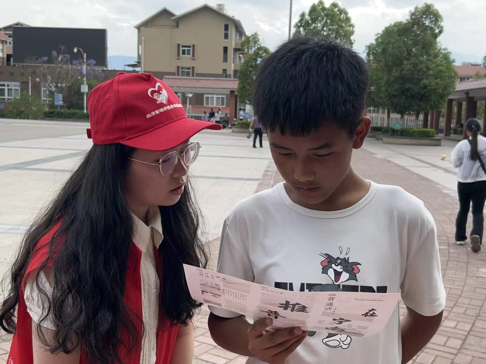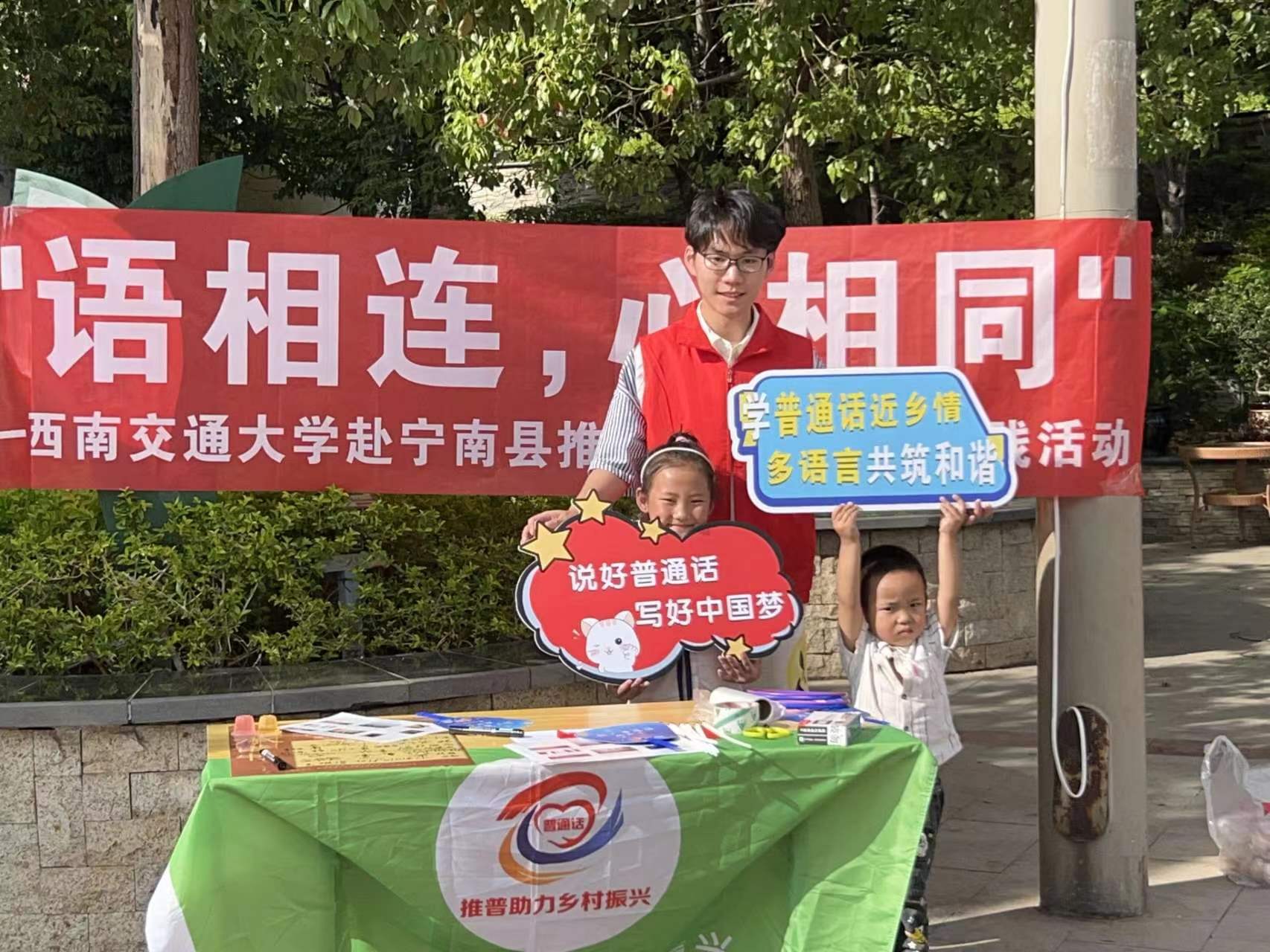 4月30日至5月2日,402永利集团官网入口“语相连,心相同——推普助力乡村振兴“实践团队来到了宁南县,在这里开展了普通话推广及相关调研活动,为西部少数民族语言文字教育助力。在此次实践中,团队通过街头调研,定点摊位,课堂教育,走访宣传等形式,了解当地普通话使用情况,普及民族共同语言,助力乡村振兴。