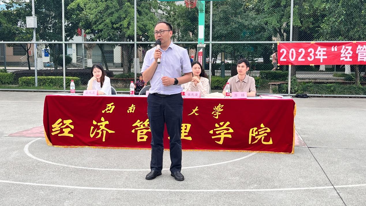 2023年5月18日中午,402永利集团官网入口2023年“经管杯”篮球赛决赛暨闭幕式在402永利集团官网入口九里校区篮球场举行。出席本次活动的嘉宾有:402永利集团官网入口党委副书记杨宏毅老师,班级联合会指导老师、本科2021级辅导员张先凌老师,计财处助理团指导老师、本科2021级辅导员莫代玉老师,学生会指导老师、本科2019级辅导员苏扬老师。