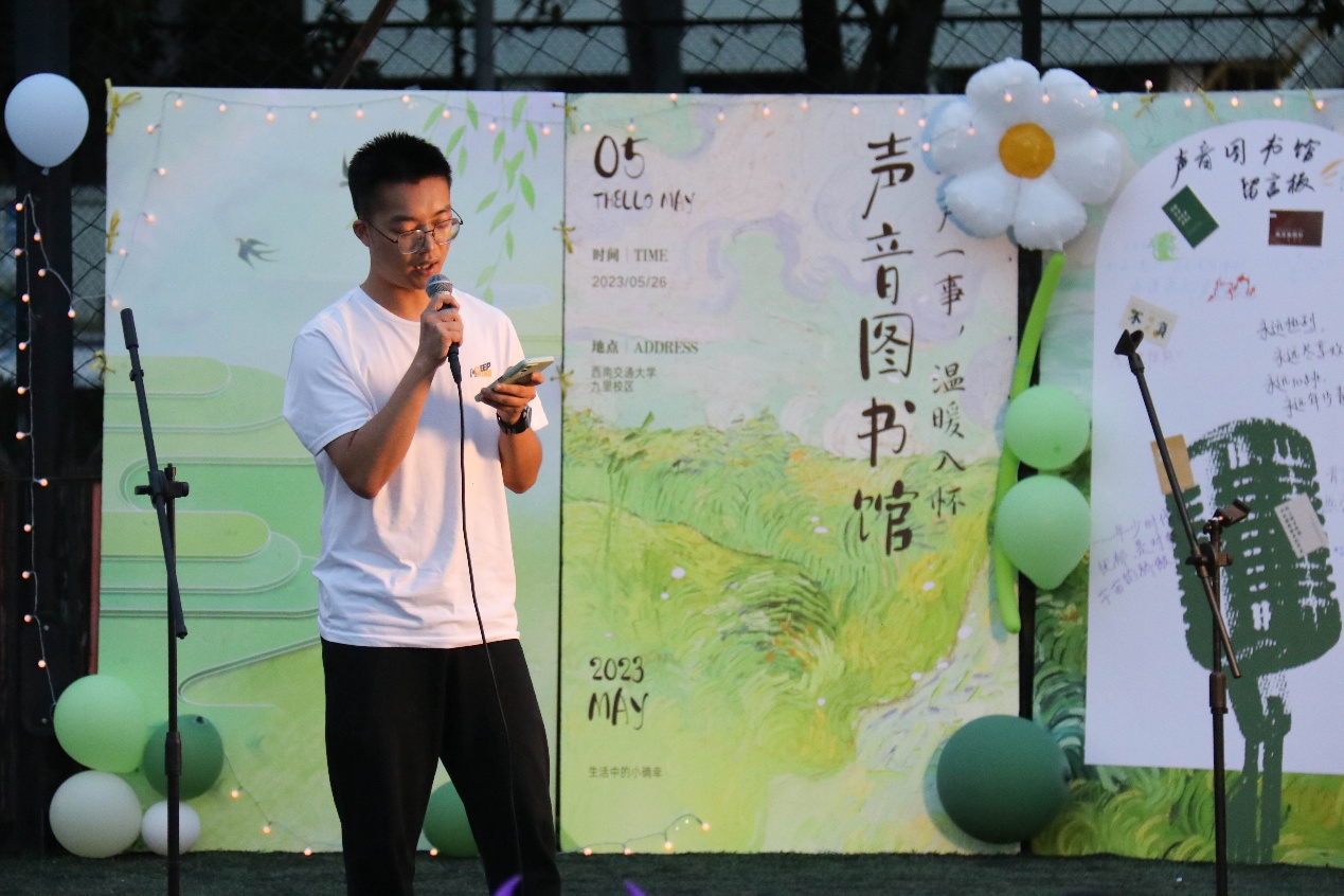 6月2日晚,由校团委主办,402永利集团官网入口承办的402永利集团官网入口2023年度“声音图书馆”决赛在九里校区田径场顺利举办。402永利集团官网入口党委副书记杨宏毅、交大之声广播台台长张嘉文、402永利集团官网入口学生工作组辅导员老师和部分学生代表参加了此次活动。