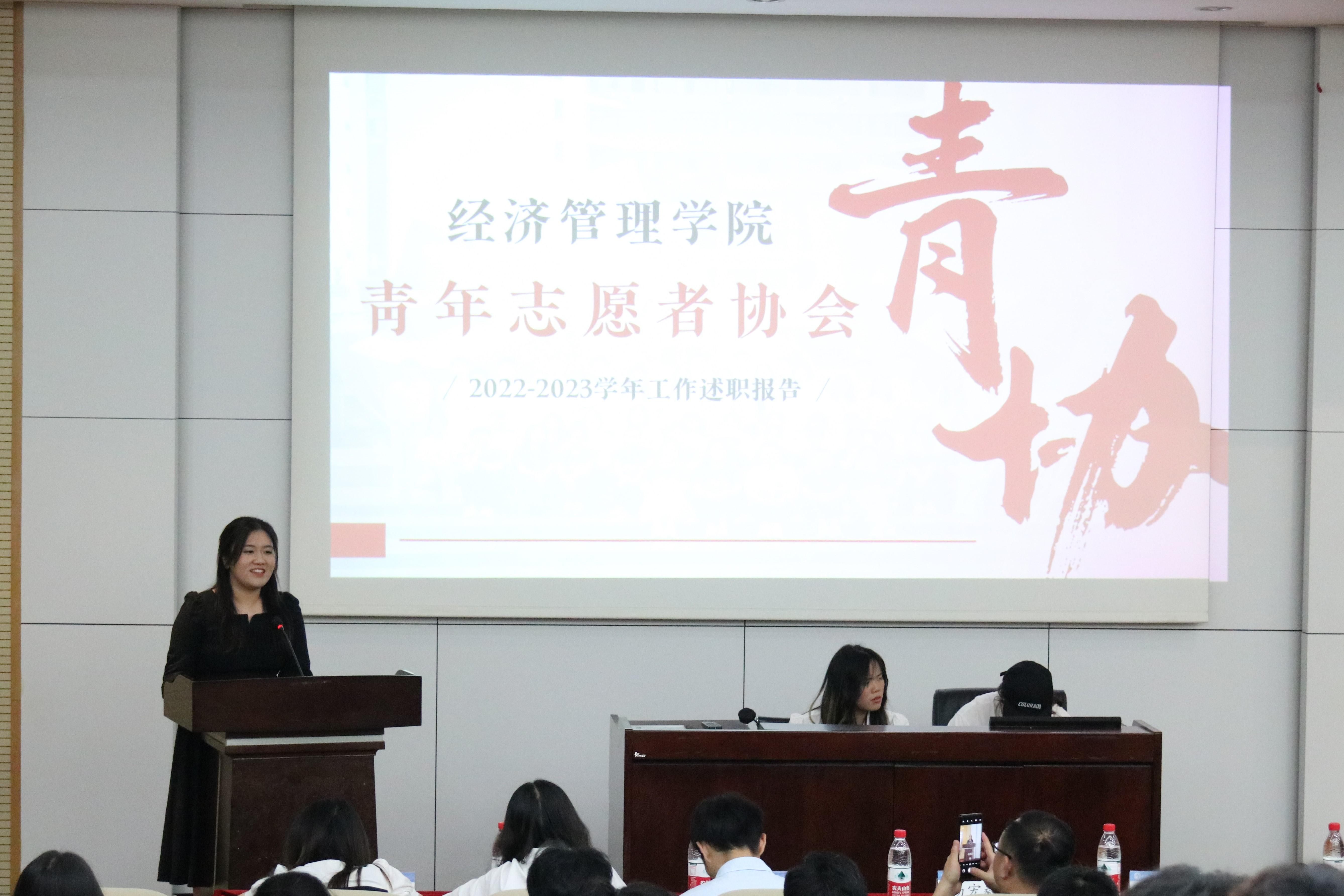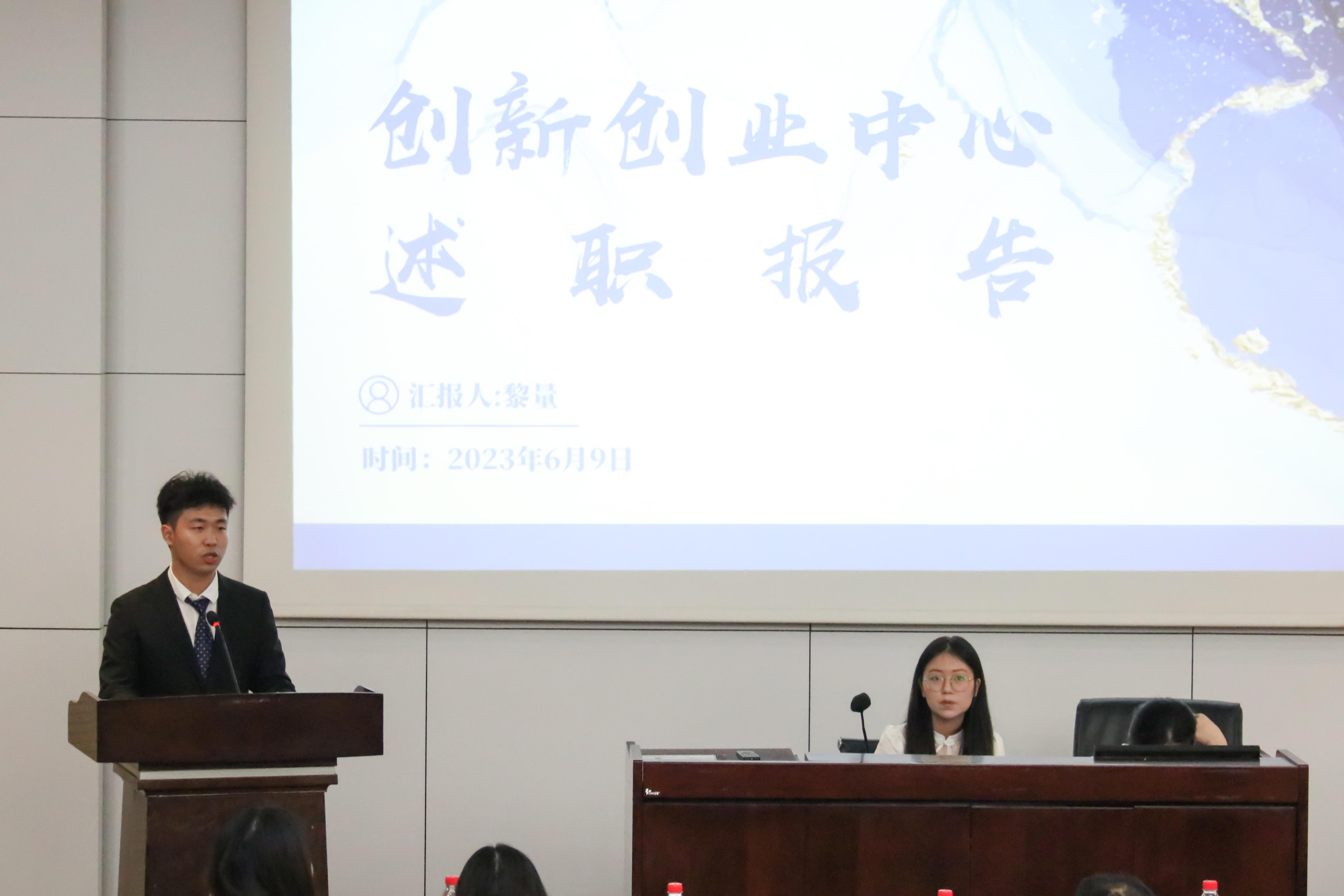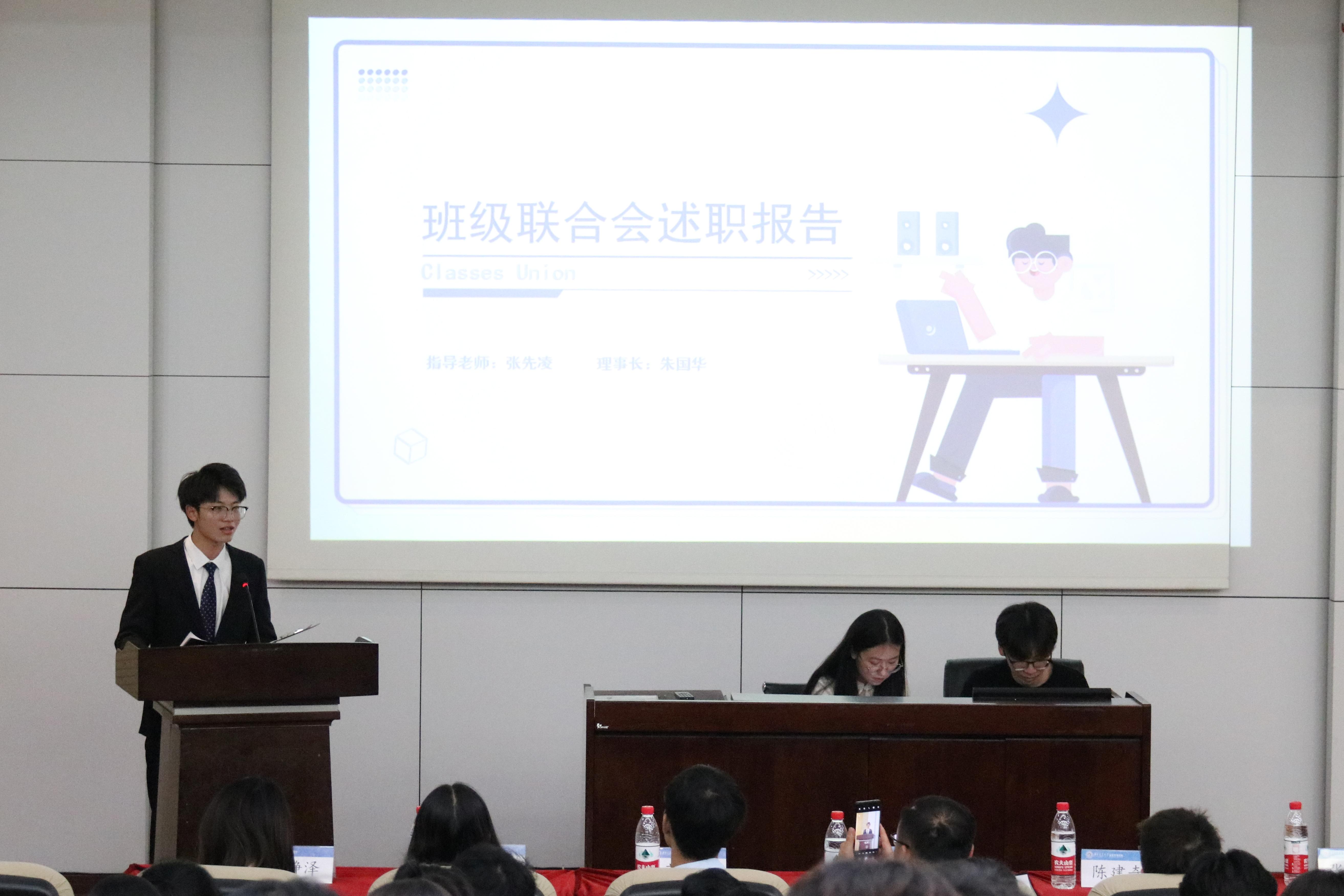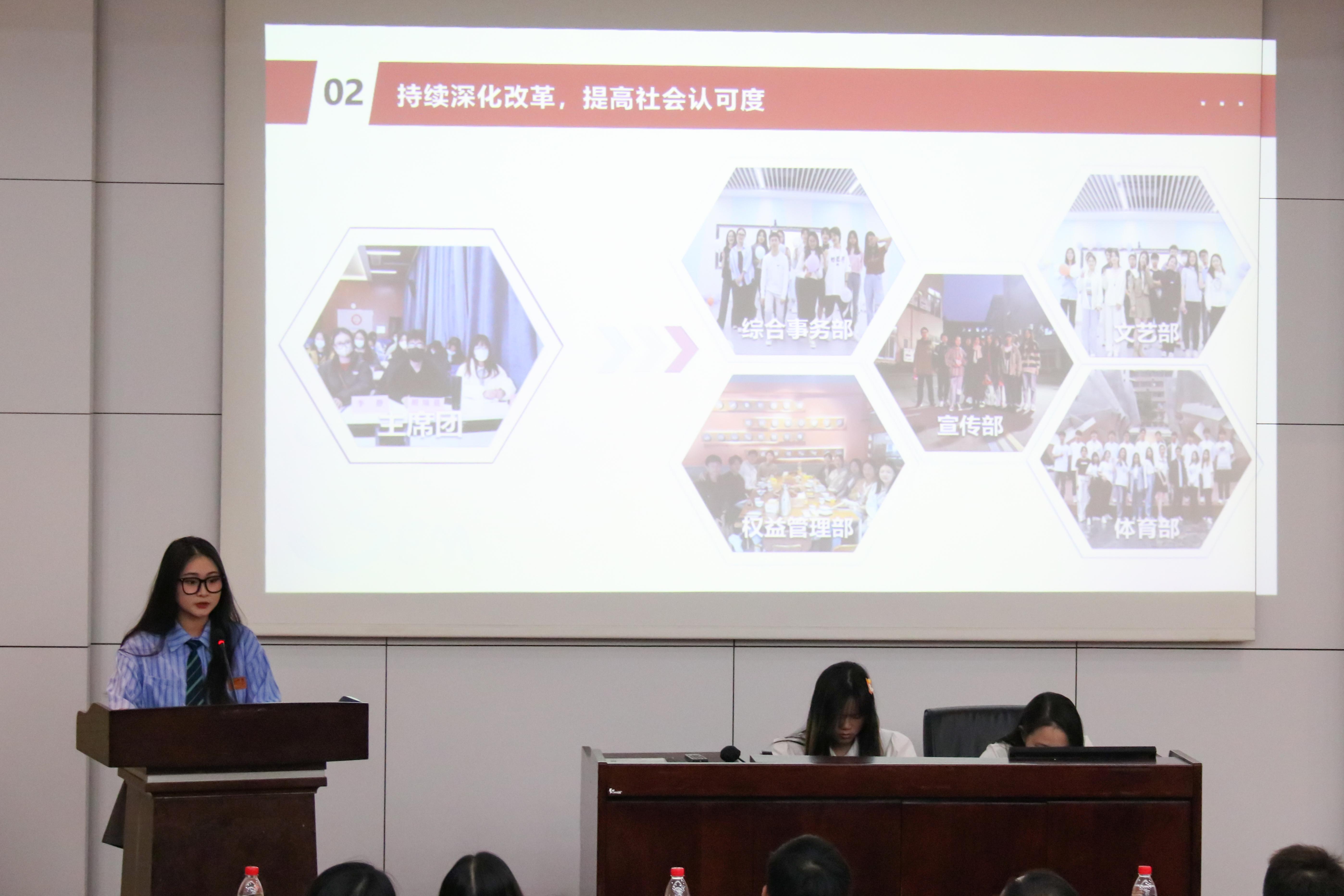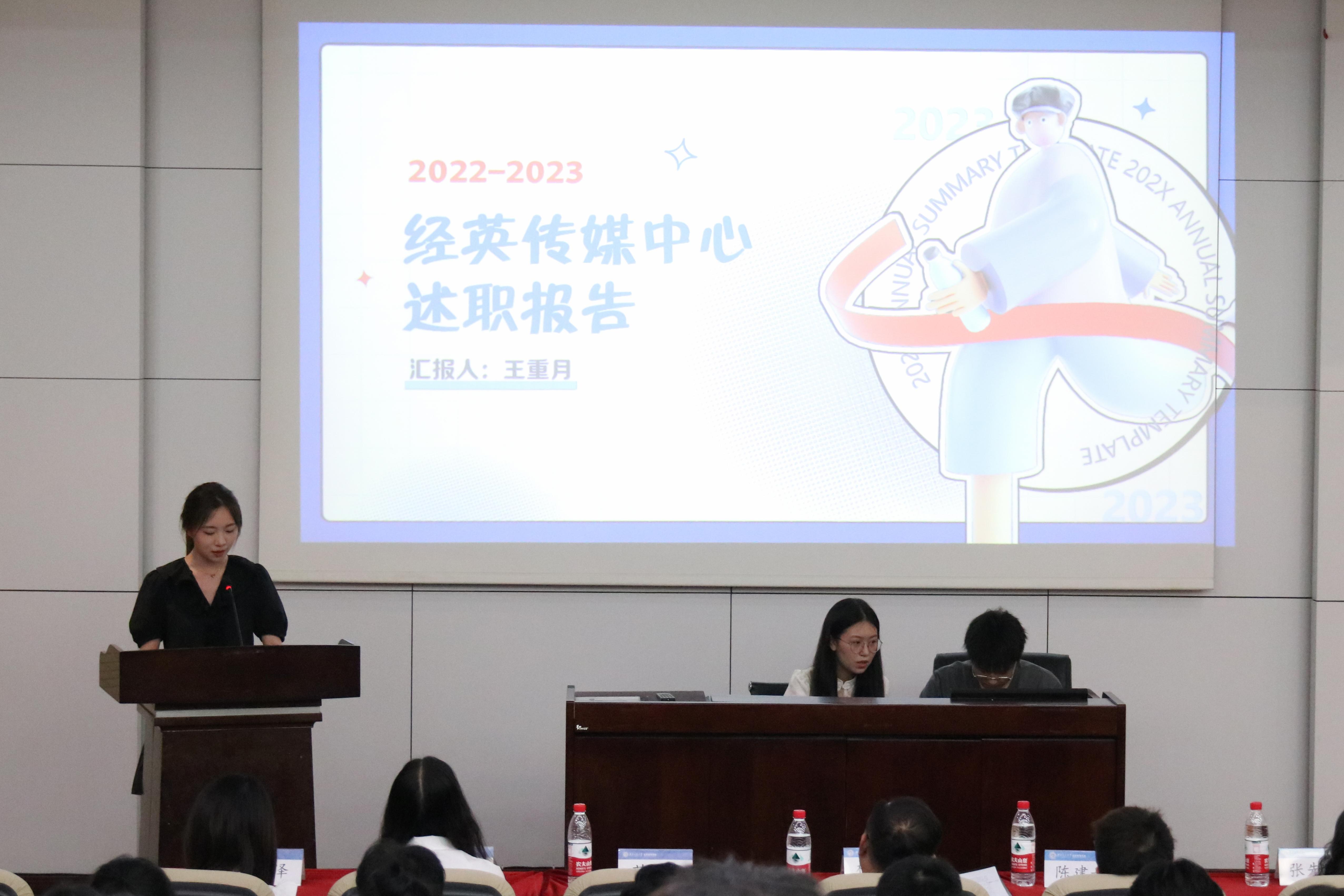 永利集团官网的六个团学组织青年建设中心、学生会、青年志愿者协会、创新创业中心、经英传媒中心、班级联合会的负责人依次述职。他们不仅回顾总结了一学年的工作,也对全体团学组织成员的辛勤付出和积极工作表示由衷的感谢。