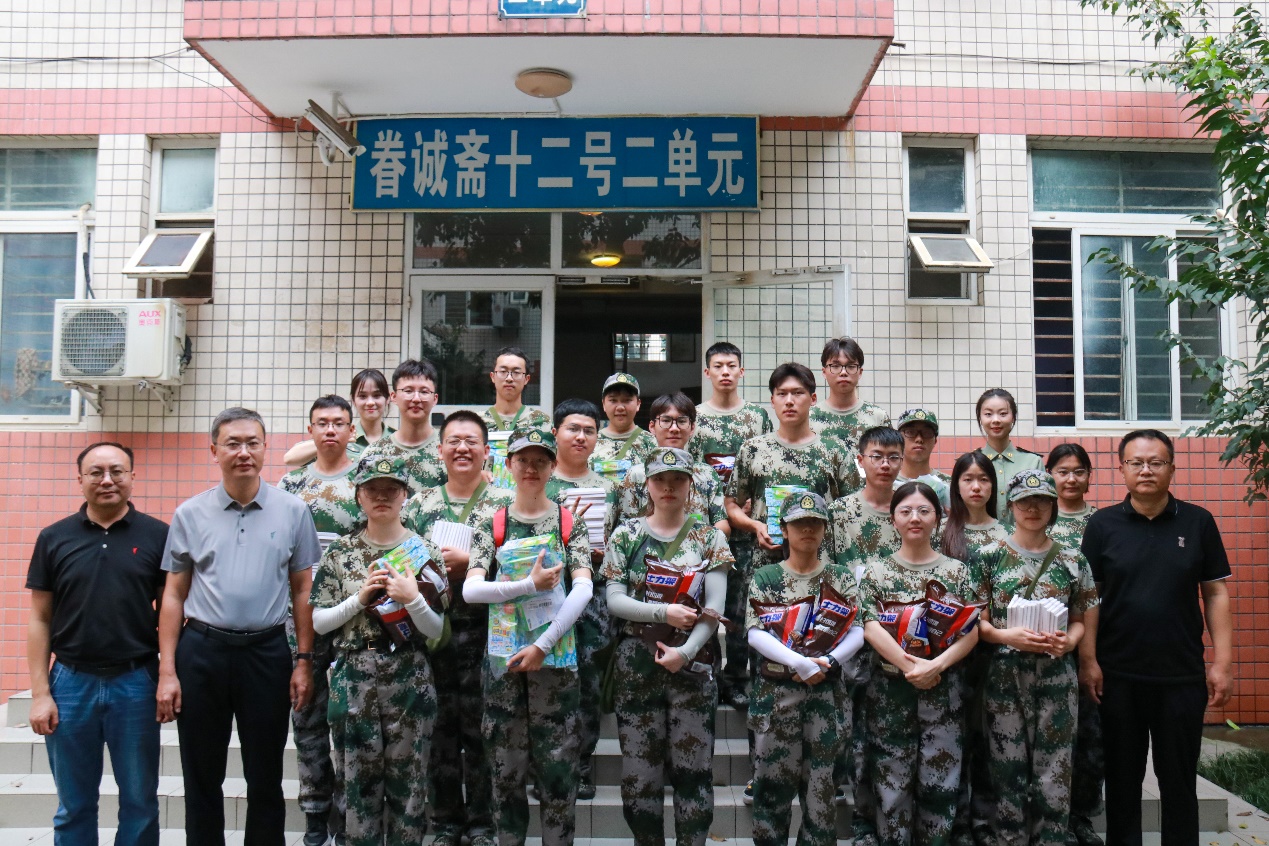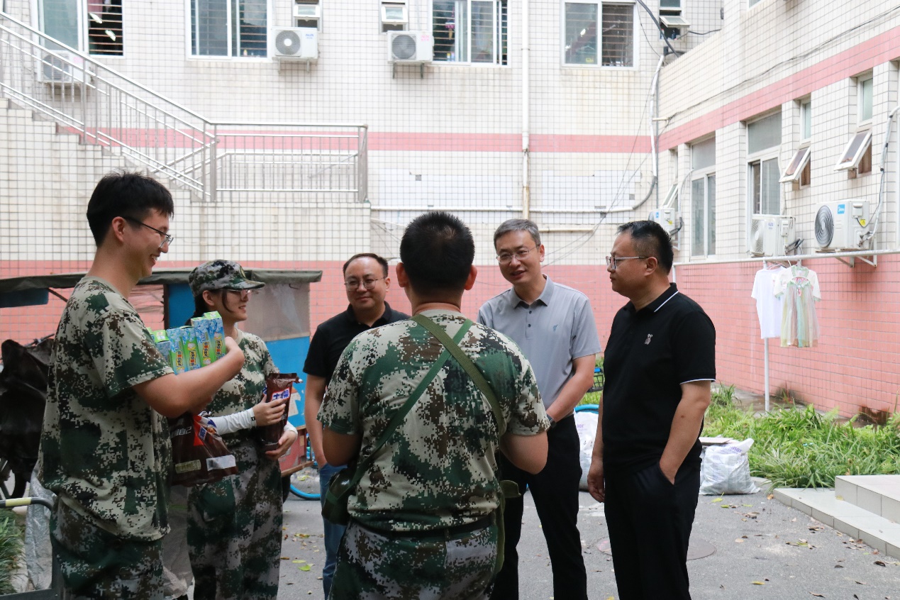 2023年8月23日,402永利集团官网入口党委书记王斌、执行院长郭强、党委副书记杨宏毅及2021级辅导员张先凌、钟文婷在九里校区眷诚斋12栋2单元慰问暑期2021级军训学生。