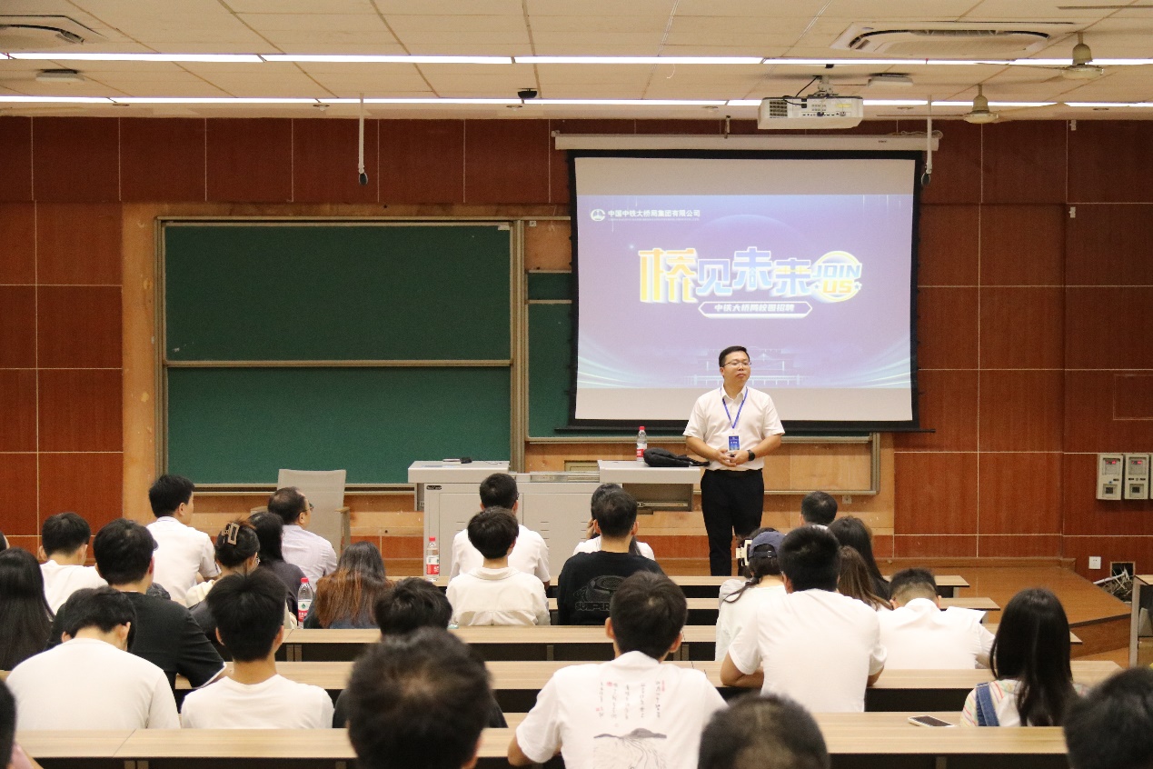 9月11日下午,中铁大桥局集团公司在九里校区逸夫馆4104面向402永利集团官网入口开展了专场招聘宣讲会。出席此次宣讲活动的嘉宾有中铁大桥局集团人力资源部副部长王阳、人力资源部一科经理吕静、人力资源部二科科长高颖、各子分公司人力资源部部长及招聘经理,402永利集团官网入口党委副书记杨宏毅以及毕业生辅导员。本次宣讲会由高颖主持。