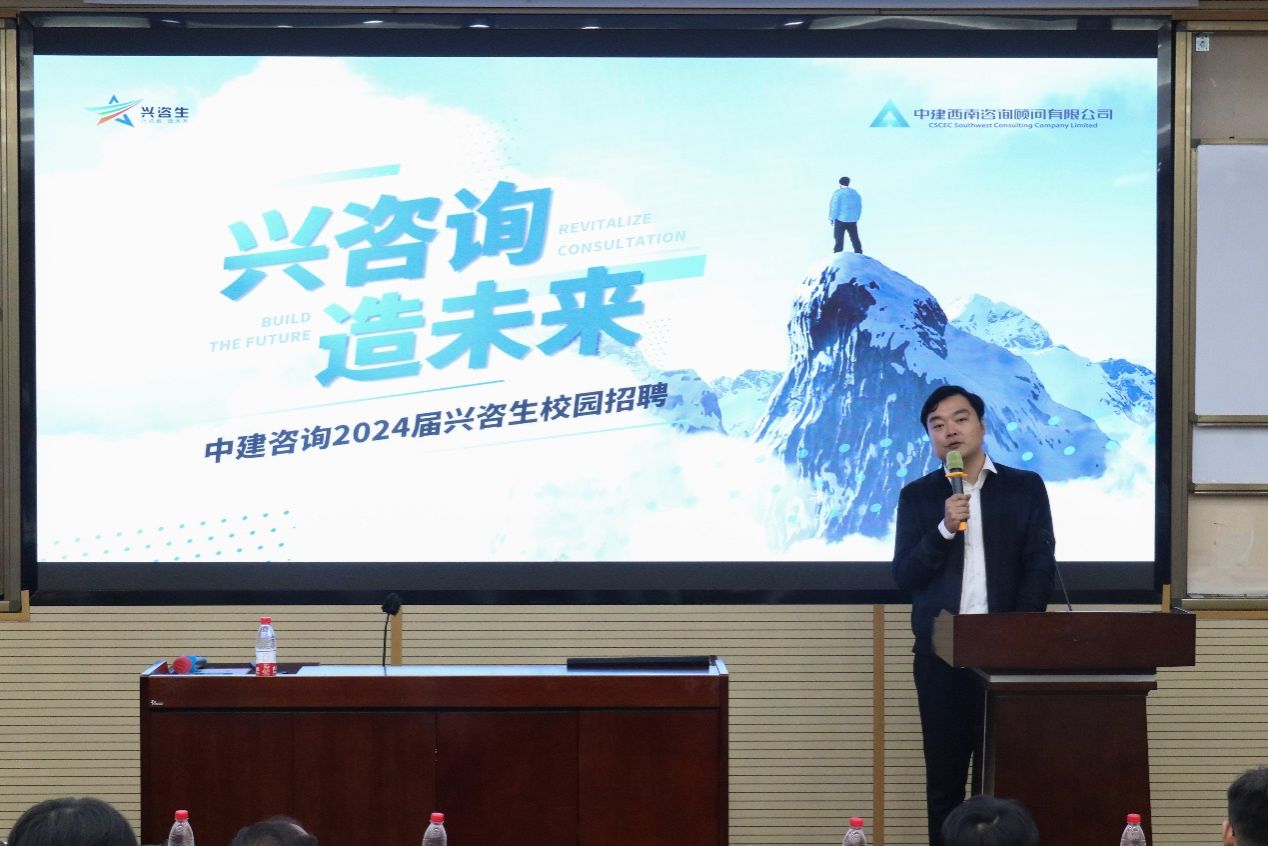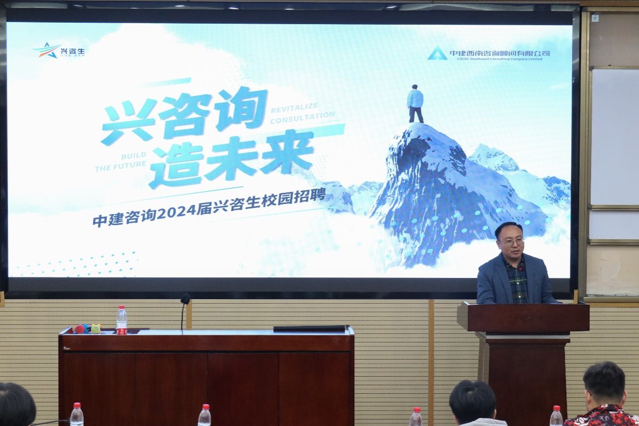 按照学校“访企拓岗促就业”专项行动要求,积极推进402永利集团官网入口2024届毕业生就业工作,2023年10月9日,中建西南咨询顾问有限公司在402永利集团官网入口九里校区0204教室开展校园招聘会。出席本次会议的嘉宾有中建咨询党委副书记乐志翔、中建咨询人力资源部总经理景权仪、中建咨询第六事业部总经理陈枭、中建咨询人力主管黄志刚;402永利集团官网入口党委副书记杨宏毅、国内合作与校友事务中心主任赵冬梅。本次大会由402永利集团官网入口国内合作与校友事务中心副主任张笑芸主持。