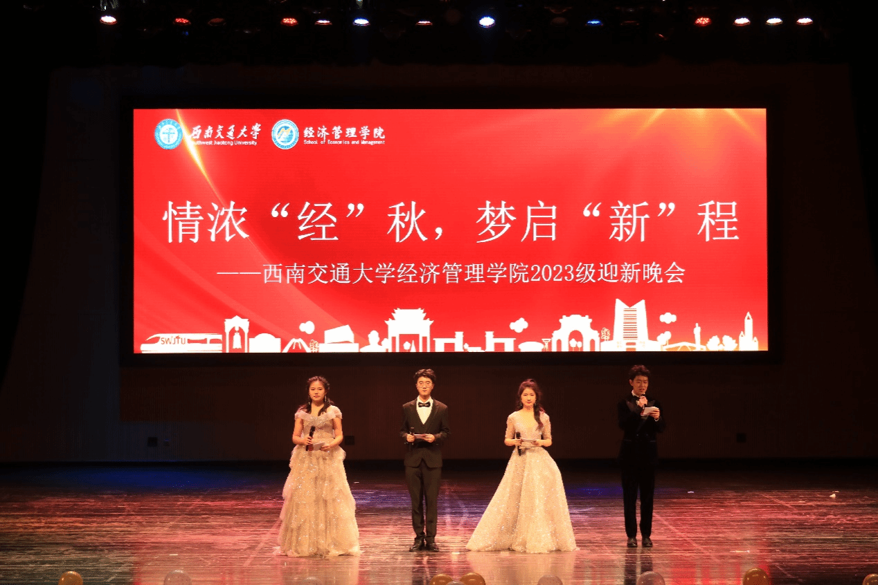 九州学子赴蓉城,挺膺担当展华彩。11月18日晚,402永利集团官网入口2023级迎新晚会在九里校区大学生会堂圆满落幕。本次晚会以“情浓‘经’秋 ,梦起‘新’程”为主题,全院新生积极展示自我,尽显风采。出席本次晚会的嘉宾有402永利集团官网入口党委副书记、纪委书记晏理斌,402永利集团官网入口党委副书记余小英,402永利集团官网入口副院长聂佳佳,学院国内合作与校友事务中心主任赵冬梅,高顿教育成都分校市场负责人杨梅,学院团委书记、学工组副组长贾佳,学工组副组长王哿,以及永利集团官网的部分师生代表。
