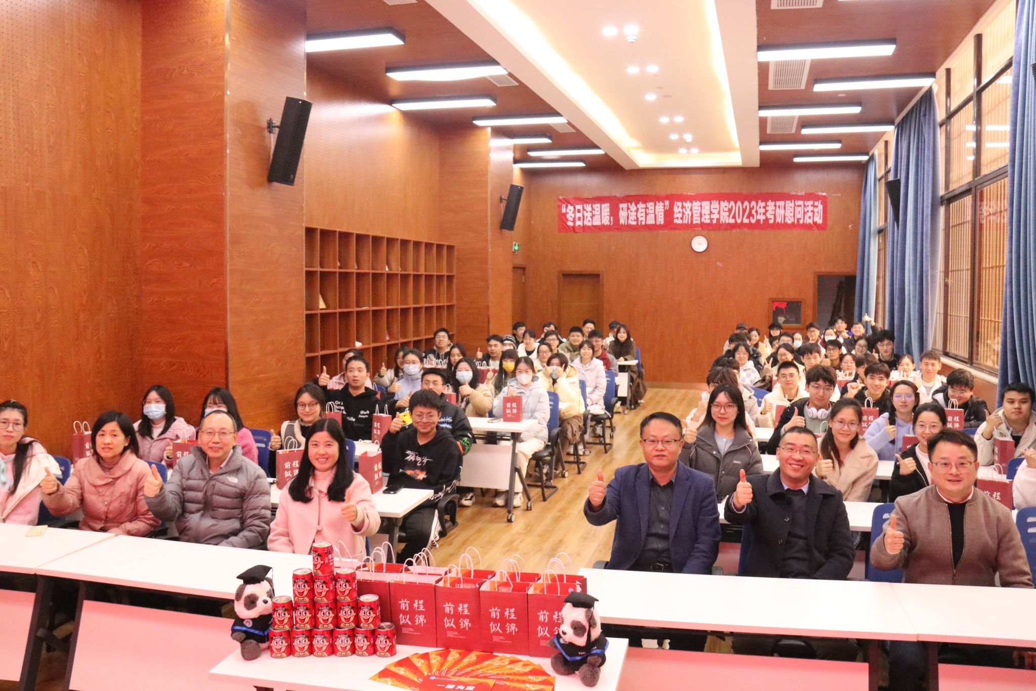 2023年12月11日下午4点,402永利集团官网入口在J0218教室举行“冬日送温暖,研途有温情”2023年考研慰问活动,该活动旨在为本院2020级考研学子在紧张的备考学习中送去关怀与温暖,在最后的考研冲刺中为同学们加油鼓劲,鼓励大家调整好心态,以积极的精神面貌迎接即将到来的考试。