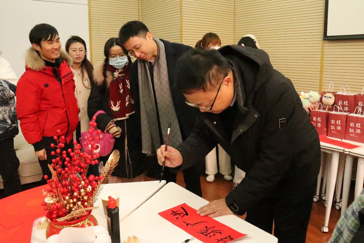 学院还为同学们准备了书本文具、暖心饭盒、贺岁玩偶等新年盲盒礼物,同学们踊跃抽取,热闹非凡。师生同写新春对联,不仅活跃了留校学生们的假期生活,也进一步营造了文明祥和的校园文化氛围,礼物虽小,但传递给同学们的浓浓情意将永远被铭记于心。