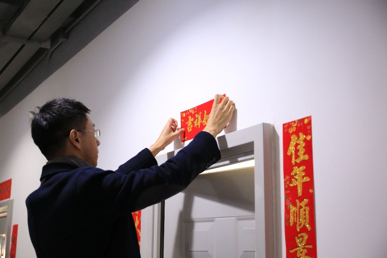 贴春联,献祥瑞。学院为留校的同学精心准备了春联、福字,党委书记郭强、院长韩科与同学们一同贴春联迎春纳福,留校同学们也纷纷亲手为宿舍贴上新春福字,“福”字不仅寄托着同学们对未来在校生活的美好向往,还承载着学院、老师们对同学们求学生涯的美好祝愿。一幅幅鲜艳的春联给宿舍增添了亮色,一句句祝福给同学们送去欢乐和温暖。祈福迎祥,岁月安康,送春联、贴福字活动不仅丰富了师生的寒假生活,弘扬了中华优秀传统文化,也为大家营造了欢乐、喜庆、祥和的春节气氛。