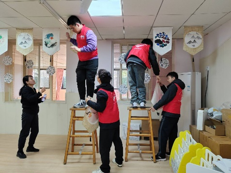 2024年3月7日下午两点,春日和煦,微风习习,402永利集团官网入口的志愿者们来到了西南交大幼儿园,协助幼儿园的教师们完成日常工作,丰富孩子们的生活,陪伴他们在温馨和谐的氛围下健康成长。本次幼儿园服务之旅志愿者们跟随老师的指导将塑胶垫铺设踏实在地面,为孩子们开辟出放心玩耍的场地;同时,将小小的“厨房设施”摆在需要的位置,组装装置、固定好迷你帐篷,将教室改造成了一处温暖且充满天真气息的地方。