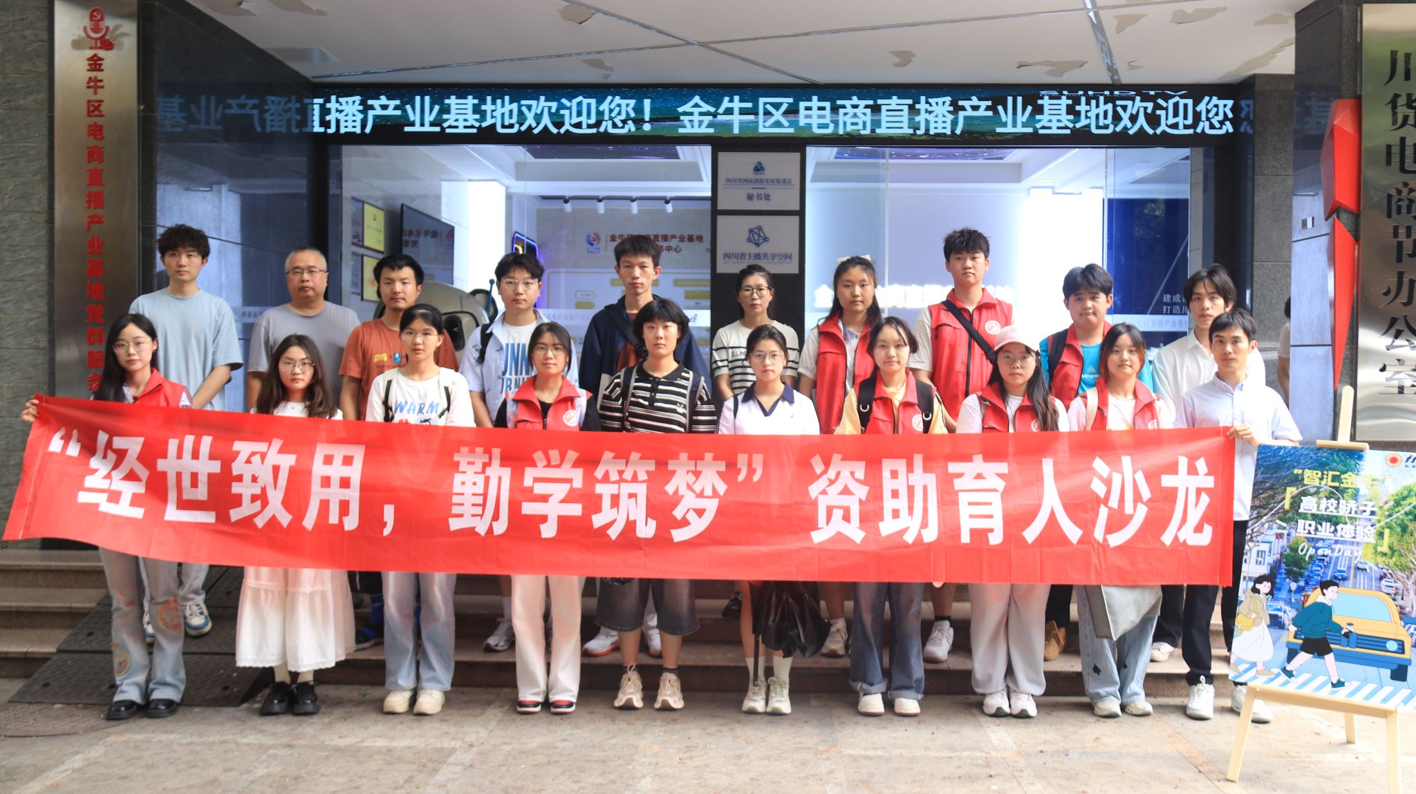 为深化资助育人理念、助推乡村振兴战略,引导大学生树立科学择业观,5 月 22 日,402永利集团官网入口学子前往金牛区电商直播产业基地,在沉浸式职业体验中探索"直播经济+乡村振兴"的融合密码,近距离感受电商新业态魅力,探索职业生涯新路径。