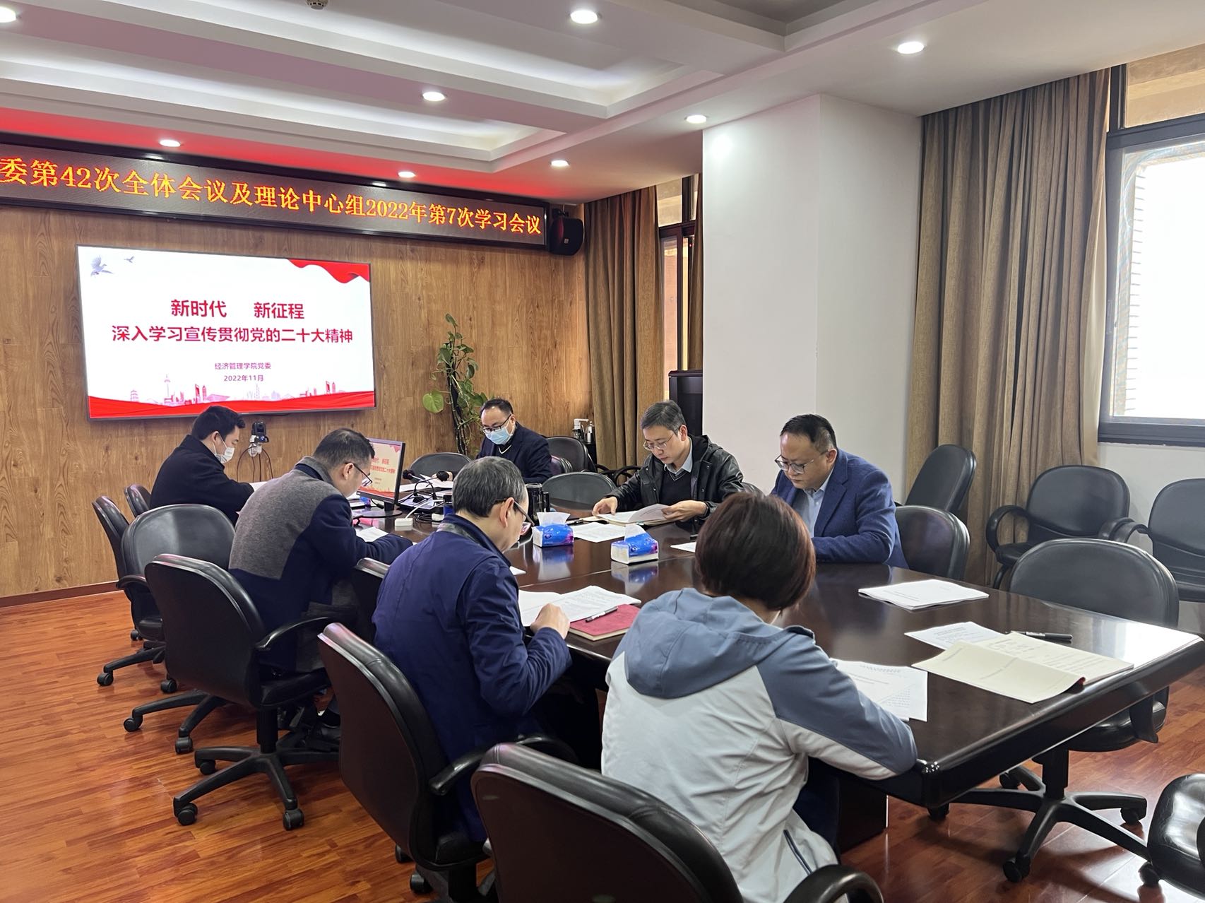 在学院第五届党委第42次全体会议上,全体党委委员认真学习了《中共402永利集团官网入口委员会关于学习宣传贯彻党的二十大精神的通知》,审定了《中共402永利集团官网入口委员会关于学习宣传贯彻党的二十大精神的实施方案》。实施方案根据学校党委关于学习宣传贯彻党的二十大精神的通知要求,结合学院实际,明确了学习领会宣传贯彻党的二十大精神的具体安排,一是抓好系统学习,二是抓好深入宣讲,三是抓好主题宣传;制定了深入推动党的二十大精神在学院落地生根的具体举措,一是不断加强党对学院工作的全面领导,始终坚持社会主义办学方向,二是认真落实立德树人根本任务,扎实做好教育教学工作,三是凝练学科发展目标与方向,加强学科内涵建设,四是深入推进有组织的科研工作,全面提高科学研究能力,五是持续实施“人才强院”战略,着力建设高水平师资队伍,六是营造良好工作文化氛围,不断提升学院内部治理水平。会议强调,学院党政领导班子、各党支部、各部门和党员干部、师生员工要在学校党委和学院党委的领导下,把学习宣传贯彻党的二十大精神作为当前和今后一个时期的首要政治任务,学深悟透,付诸行动,进一步增强“四个意识”、坚定“四个自信”、做到“两个维护”,弘扬伟大建党精神,自信自强、守正创新,踔厉奋发、勇毅前行,团结一心推动学院向好向上、又好又快发展。