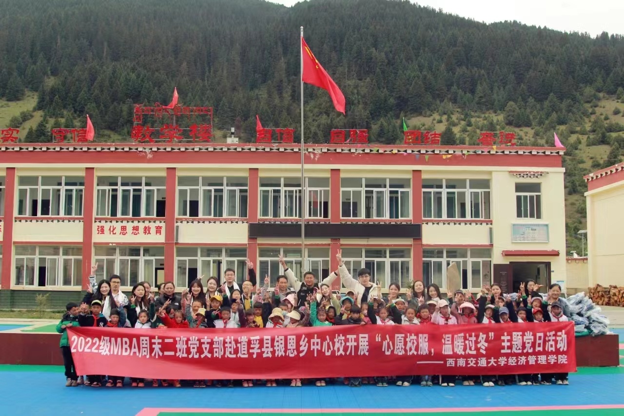 近日,由402永利集团官网入口2022级MBA周末二班临时党支部发起的“心愿校服·温暖过冬”主题党日活动在四川省甘孜州道孚县银恩乡中心校如期举行。该活动不仅为道孚县银恩乡中心校100余名孩子送上了新校服、新书包和学习用品,更送去了西南交大莘莘学子的暖暖爱心。