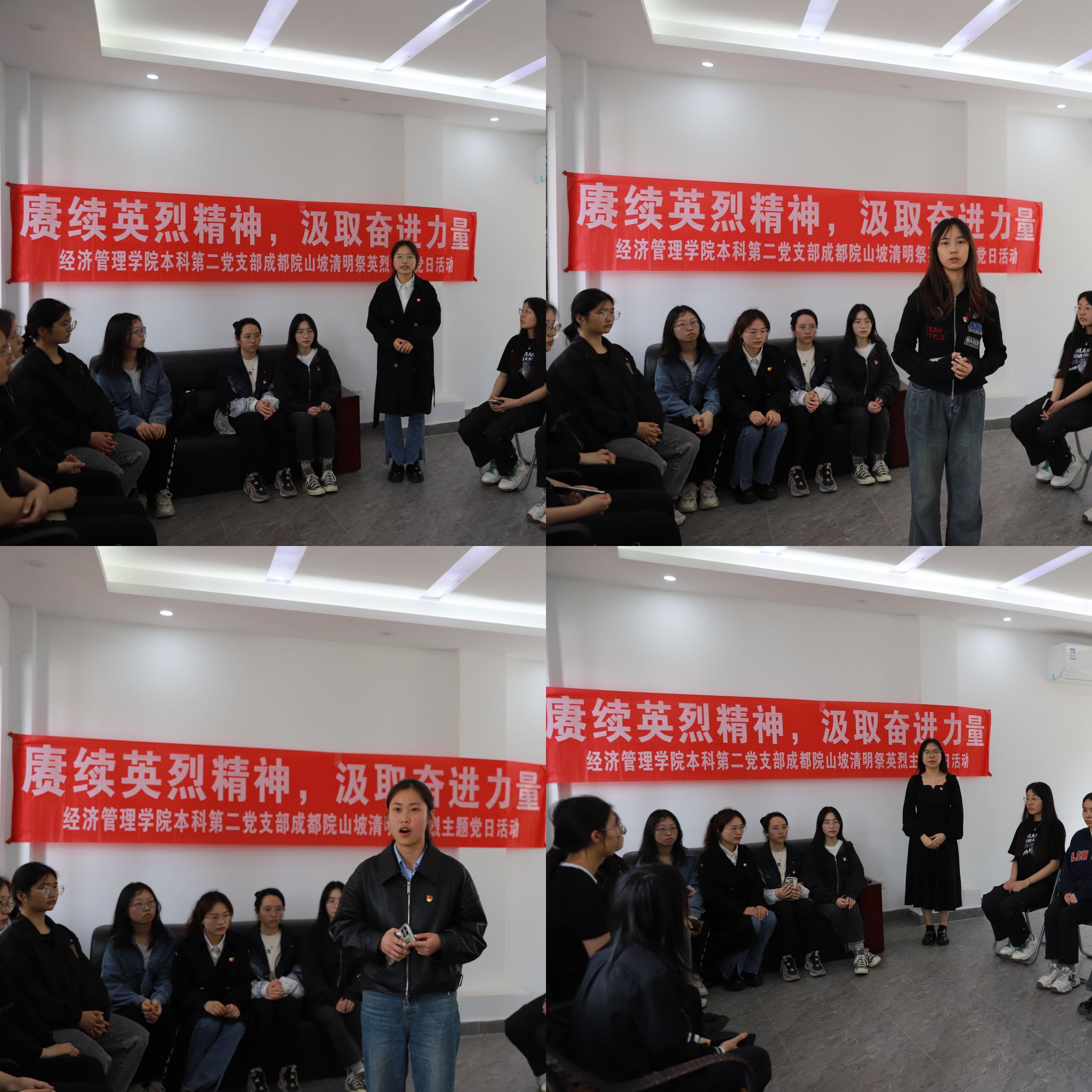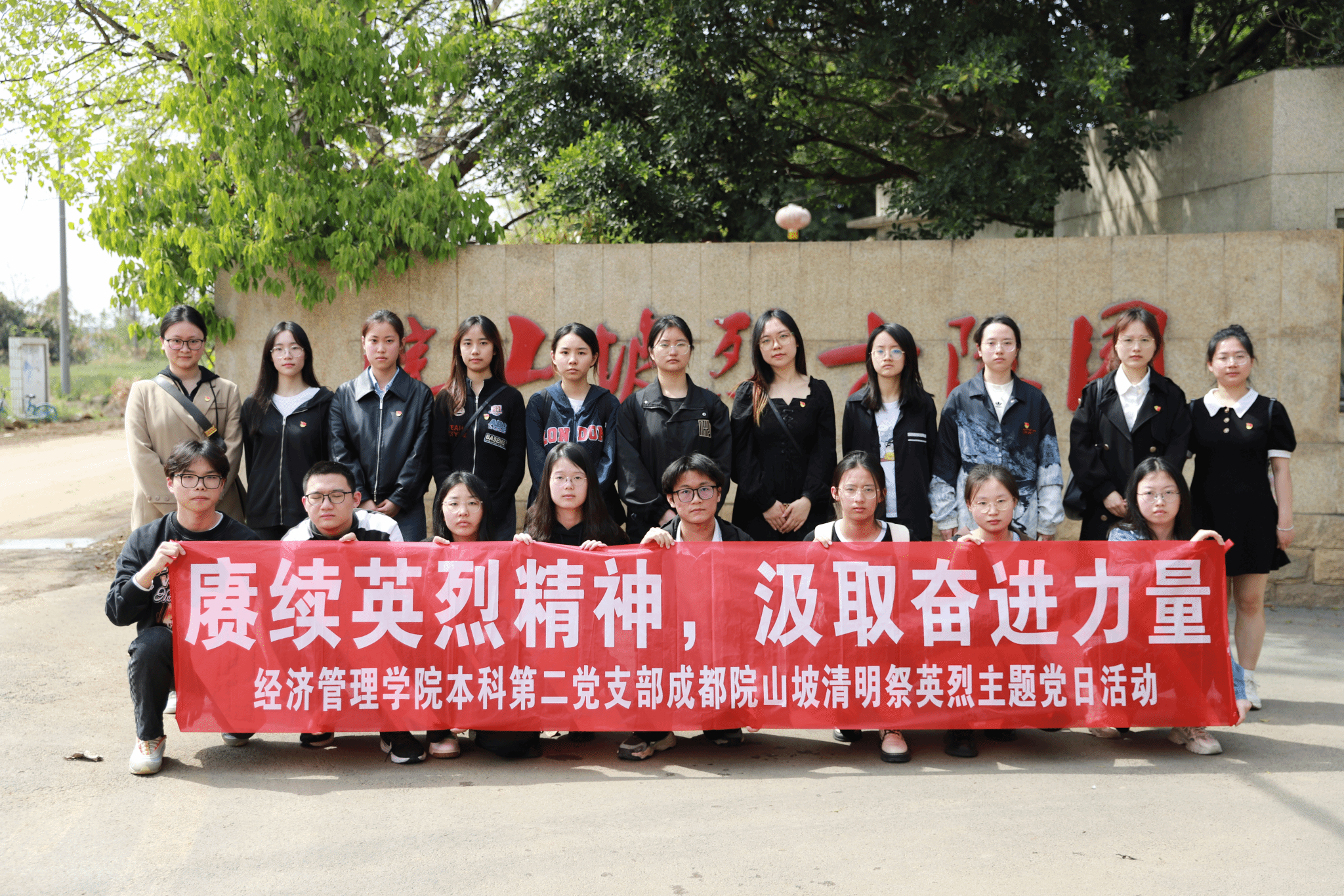春风拂陵草青青,英雄浩气贯长空。在万物生长、春意盎然的美好时节,“清明”提醒我们停下脚步、驻足回望。“清明”不仅是遥寄相思,缅怀先祖的日子;更是追思英烈忠魂,回首国家艰辛来路的重要载体。为深刻缅怀革命先烈,赓续红色血脉,汲取奋进力量,4月4日,402永利集团官网入口本科第二党支部组织党员和入党积极分子前往成都市院山坡烈士陵园开展“赓续英烈精神,汲取奋进力量”清明祭英烈主题党日活动。