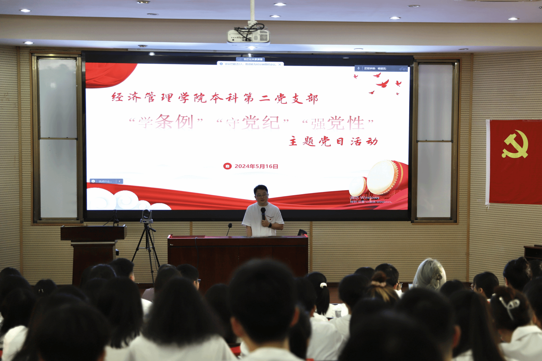 5月16日,402永利集团官网入口本科第二党支部在信息楼0202教室开展党纪学习教育—“学条例,守党纪,强党性”主题党日活动,以促进广大党员深刻学习领悟《中国共产党纪律处分条例》,切实做到知纪于心,立纪于身,化纪于行,推动党纪学习教育入脑入心,走深走实。本次活动特别邀请到学院纪委副书记张震宇老师到场进行学习分享。