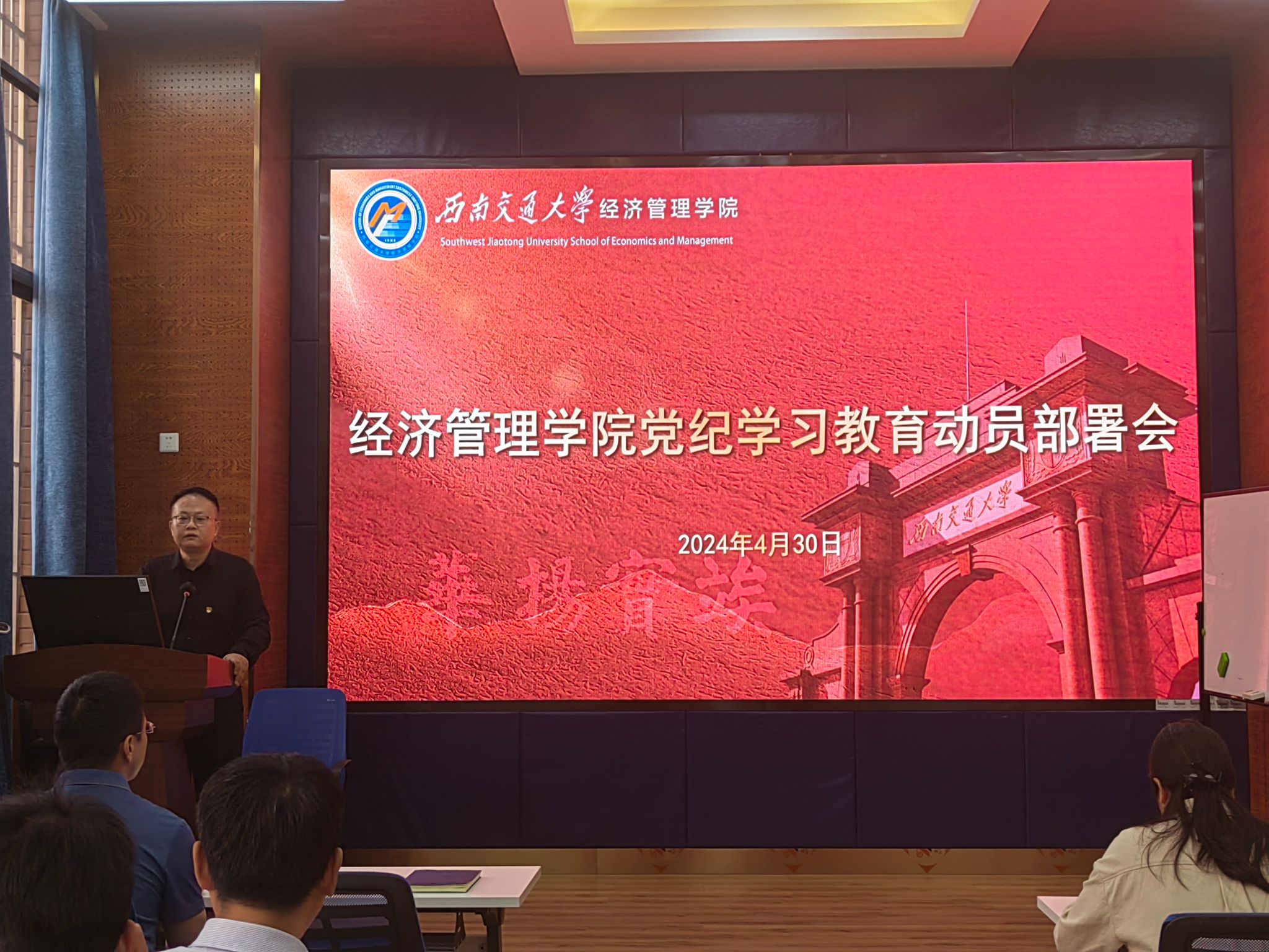 学院党委高度重视党纪学习教育,坚持谋划在前、行动在先,及时成立工作专班,制定《关于开展党纪学习教育的实施方案》和《党纪学习教育党委理论学习中心组、领导班子读书班集中学习方案》,并于4月30日召开党纪学习教育动员部署会,由学院党委书记郭强主持,学院党委副书记、纪委书记晏理斌作动员,专题传达学习习近平总书记关于党纪学习教育重要指示批示精神,明确部署开展党纪学习教育的系列工作、重点要求。