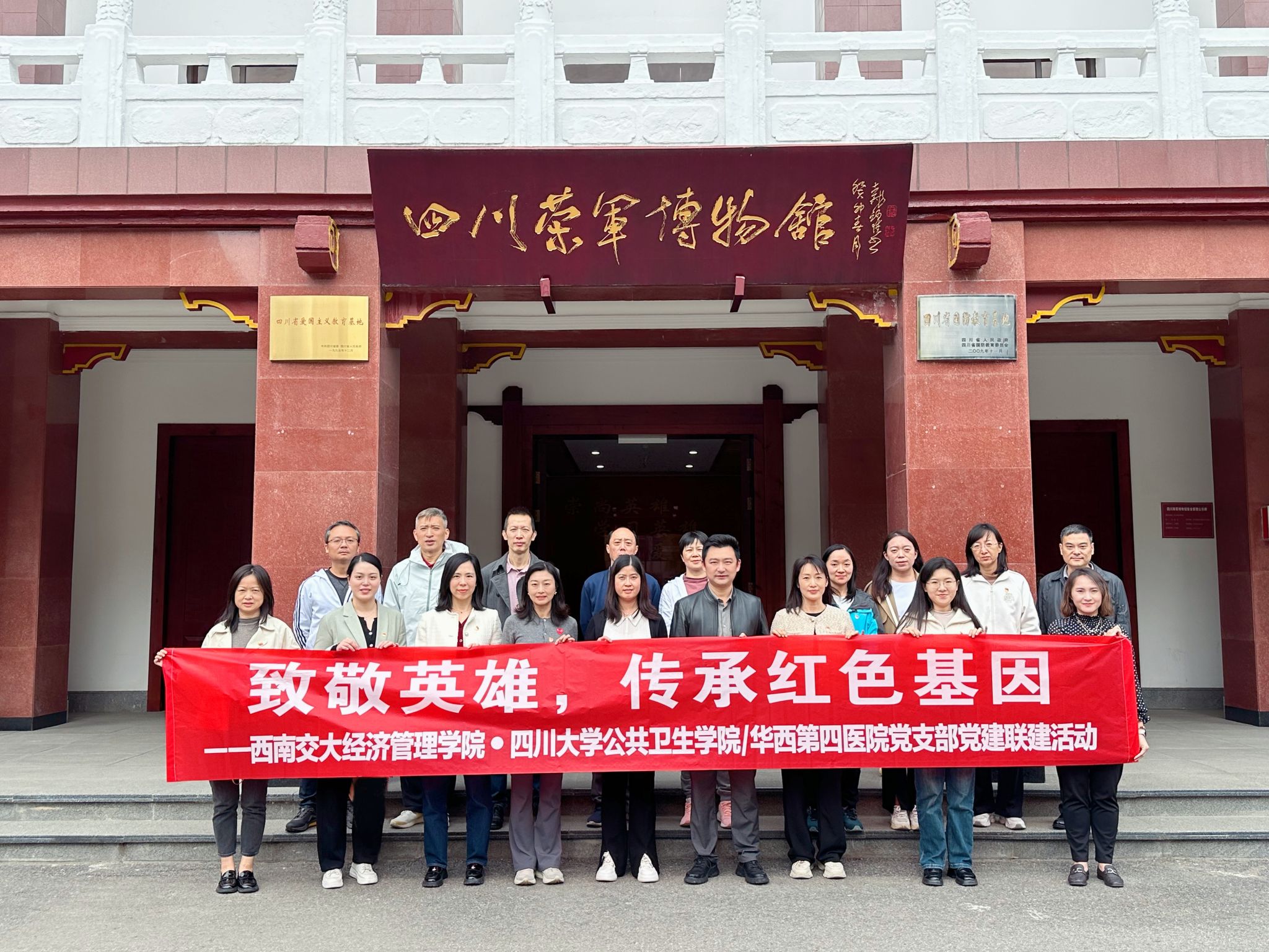 2024年10月30日下午,402永利集团官网入口机关第一、第二党支部与四川大学公共卫生学院(华西第四医院)业务实体联合党支部共同前往四川荣军博物馆开展“致敬英雄,传承红色基因”主题党日活动。此次活动旨在通过参观博物馆,深入了解革命伤残军人的英勇事迹,弘扬爱国主义精神,进一步坚定党员的理想信念。