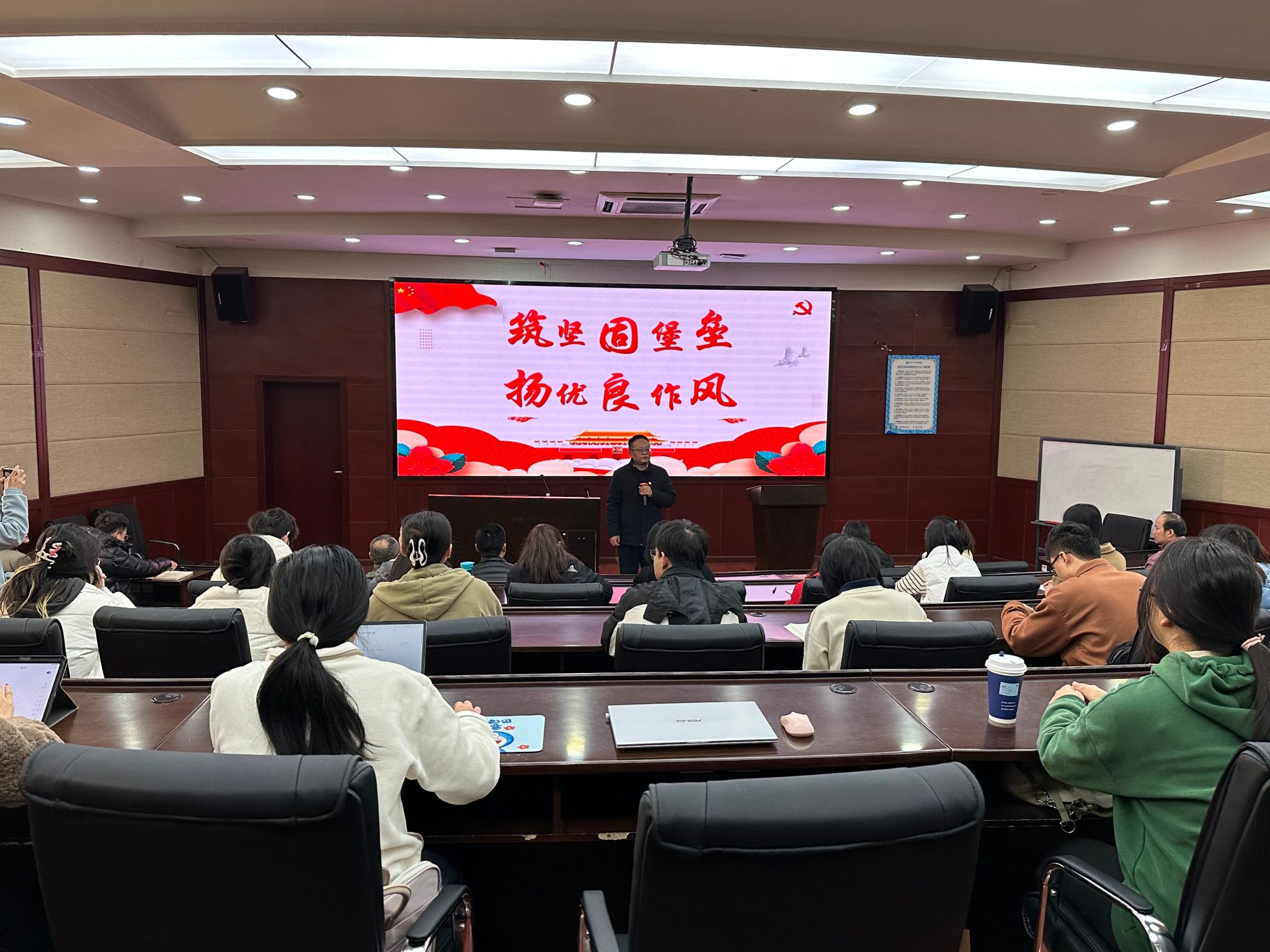 2024年11月28日上午10点半,402永利集团官网入口党委在零号楼J0228教室开展党委书记讲党课活动,本次专题党课由学院党委书记郭强主讲,学院党委副书记晏理斌、师生党支部委员和党员代表近40人参加了本次党课。