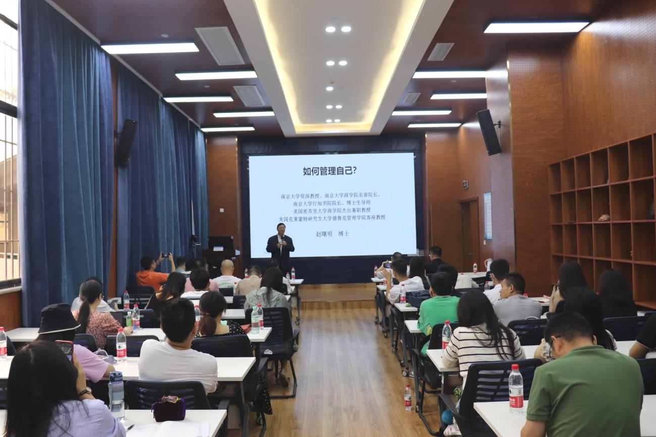 2023年6月23日上午,永利集团官网邀请教育部工商管理类学科专业教育指导委员会副主任委员、中国管理研究国际学会第三任主席、中国管理现代化研究会副会长、中国人力资源开发研究会副会长,南京大学人文社会科学资深教授、南京大学商学院名誉院长、南京大学行知书院院长、博士生导师赵曙明教授到我校作题为《如何管理自己》的专题学术报告。本次讲座由402永利集团官网入口副院长聂佳佳教授主持,学院部分老师和同学参与了此次学术活动。402永利集团官网入口执行院长郭强致欢迎辞并对赵曙明教授进行了隆重介绍,并对赵曙明教授的到来表示热烈的欢迎和感谢。