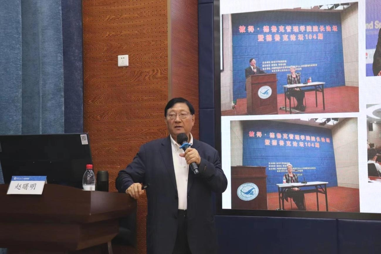 首先,赵曙明教授从新时代对人才培养的新要求启题,深度剖析管理大师彼得·德鲁克跨越时空的管理思想,并深入浅出地阐述了如何管理自己的管理理论。他结合案例指出自我管理需从三个方面入手,一是了解自身的优势与缺点并学会扬长避短;二是关心他人、了解他人并学习他人的优点;三是学会将自我和他人融合并整合有效资源。