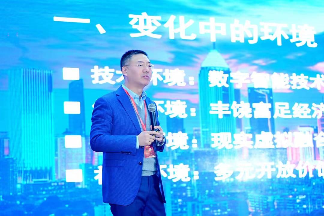 开幕式结束后,进入大会特邀报告环节。第一场特邀报告中,来自武汉大学的汪涛教授作了主题为“新市场 新营销”的报告。他从数字智能技术、丰饶富足经济、现实虚拟融合、多元开放价值等方面,阐释了“VUCA时代”下技术、经济、物质、社会环境的变化,以及营销实践与理论研究面临的机遇与挑战,为与会者提供了新的研究方向与思路启发。