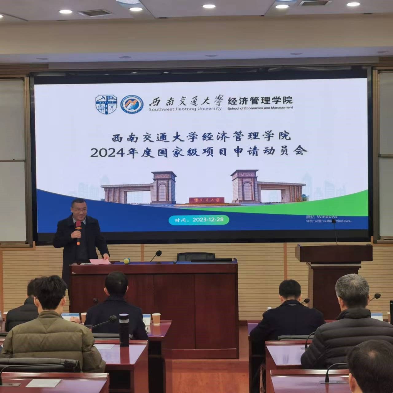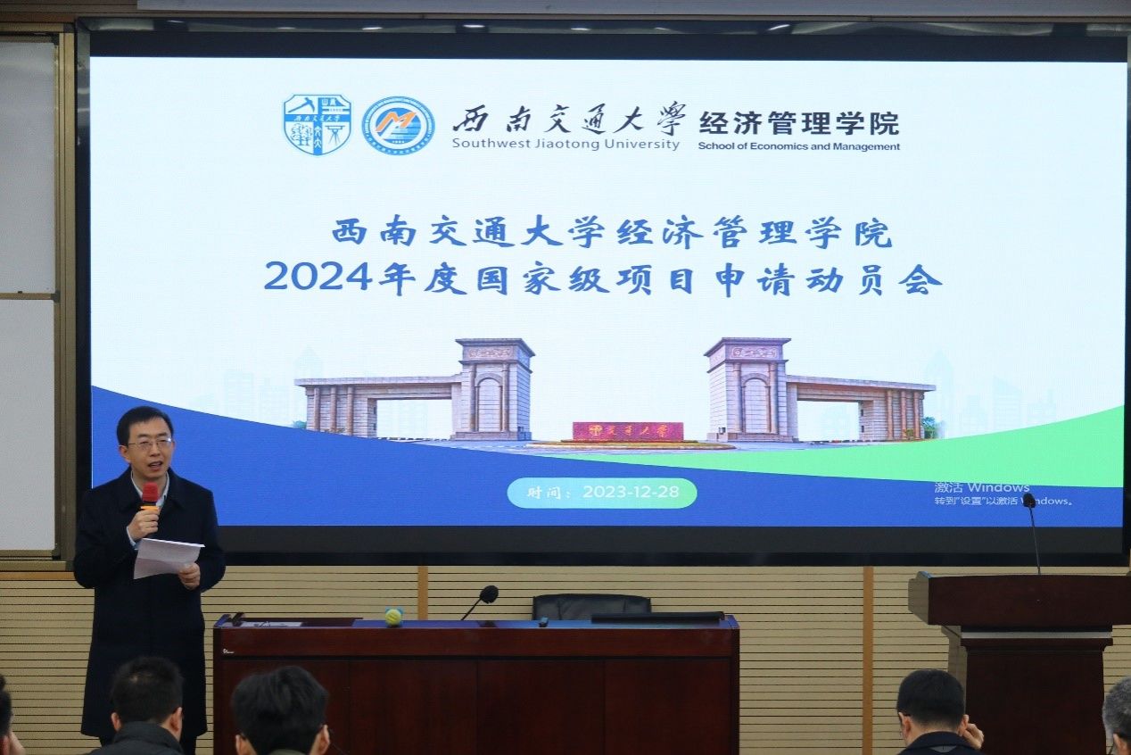 2023年12月28日,永利集团官网召开了2024年度国家级项目申报动员会。学院特邀文科学部副主任兼文科处处长李华强、科学技术发展研究院副院长马霖、科研院基础研究管理部基金人才办公室科长刘海龙出席。动员会由402永利集团官网入口副院长聂佳佳主持,金融与财务学系教授黄登仕、高增安老师分享了申报自科基金、社科基金的经验,韩科院长做总结发言。全院40余名师生参加了此次动员会。