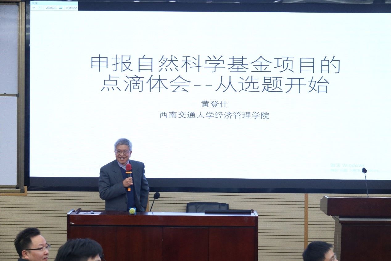 黄登仕教授为参会师生做了自科基金申请经验分享。黄老师从实用性、创新性、匹配性、可行性四个方面分别介绍了选题的重要性,他以准备自科重点专项基金的过程为例,强调选题要与需求、规划、战略、指南等相匹配,建议老师们在写申请书前可以先画出选题思维框架图、研究内容示意图和技术路线图。
