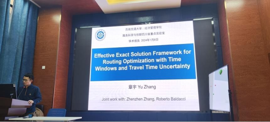 2024年1月9日,西南财经大学章宇教授应邀在402永利集团官网入口为永利集团官网师生分享题为“Effective Exact Solution Framework for Routing Optimization with Time Windows and Travel Time Uncertainty”的学术讲座,本次学术活动由402永利集团官网入口副院长聂佳佳教授主持,学院部分教师及研究生参加此次学术活动。