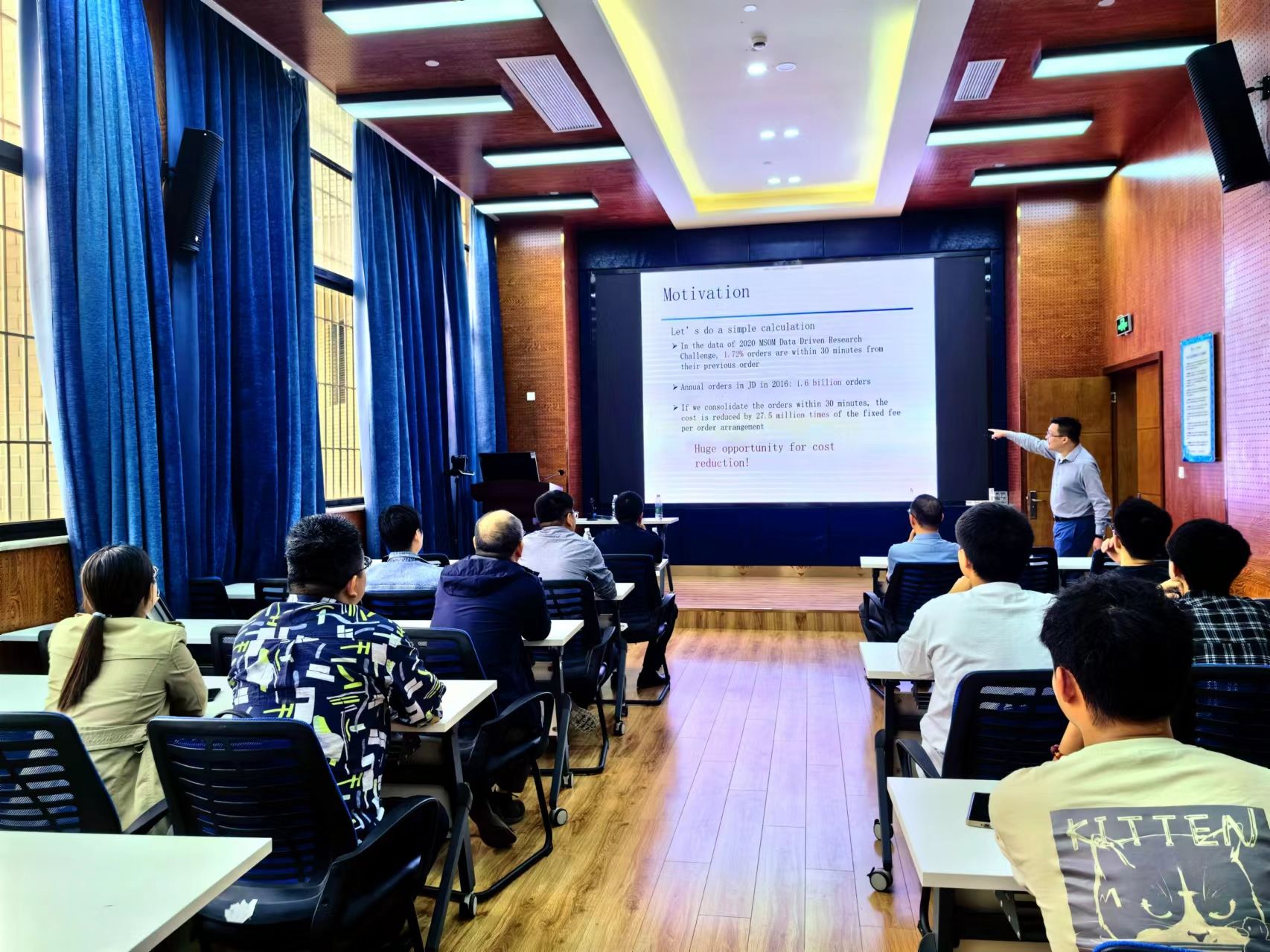 林教授表示,经过与传统的Myopic policy和Static policy方法进行对比,该方法不仅减少了订单物流安排次数,而且降低了顾客的等待时间。此外,林教授就如何更有效找到优质数据以及如何根据现有数据来进行更有意义的科学研究分享了他的宝贵经验。
