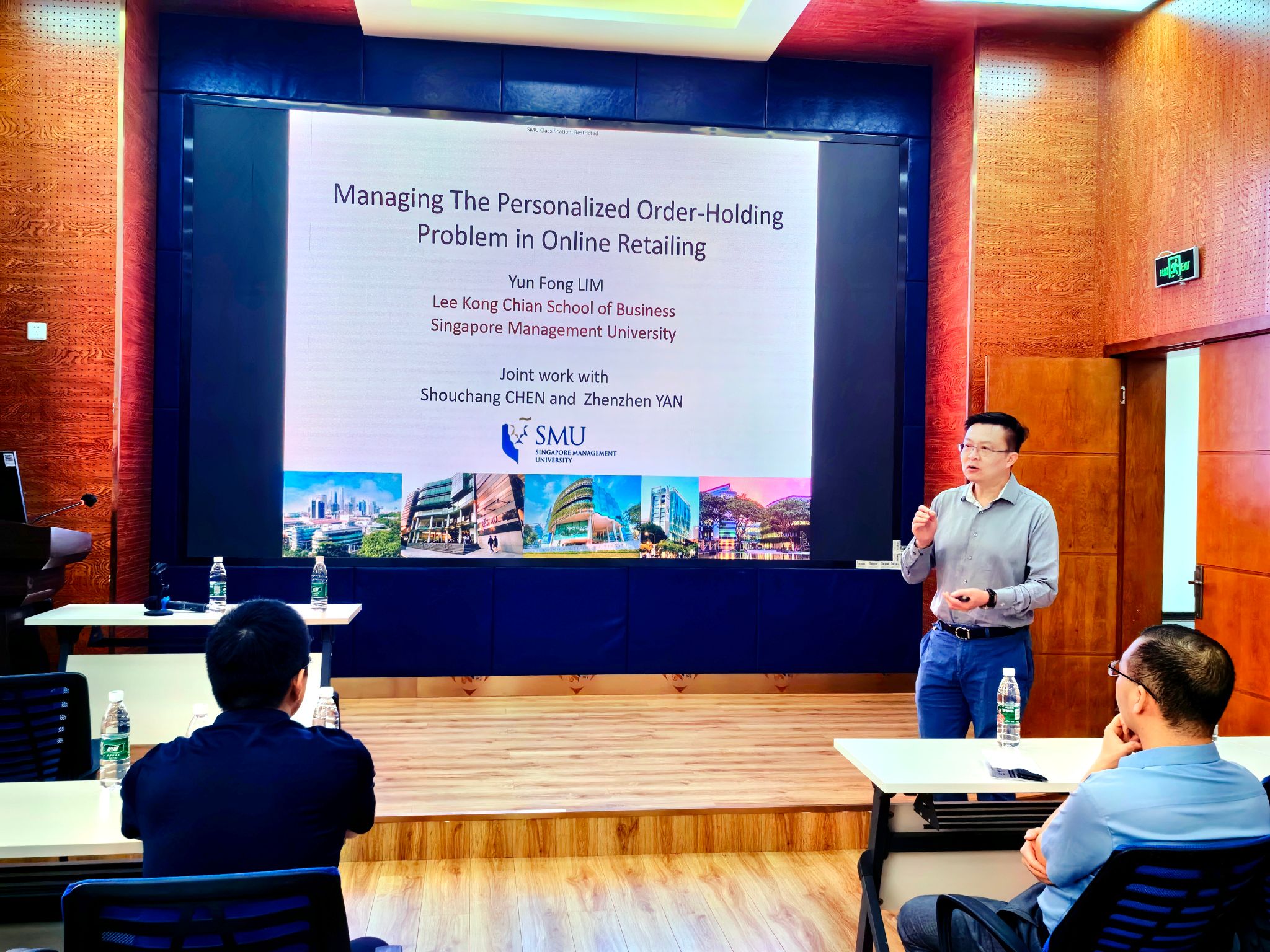 2024年4月25日新加坡管理大学林云峰教授应邀在学院0218室为永利集团官网师生作了题为“Managing The Personalized Order-Holding Problem in Online Retailing”的学术讲座。本次学术活动由学院副院长聂佳佳教授主持,学院院长韩科及部分教师、研究生参加了此次学术活动。聂佳佳教授首先对林云峰教授的学术成果进行了介绍,同时对林云峰教授的到来表示真挚的感谢!