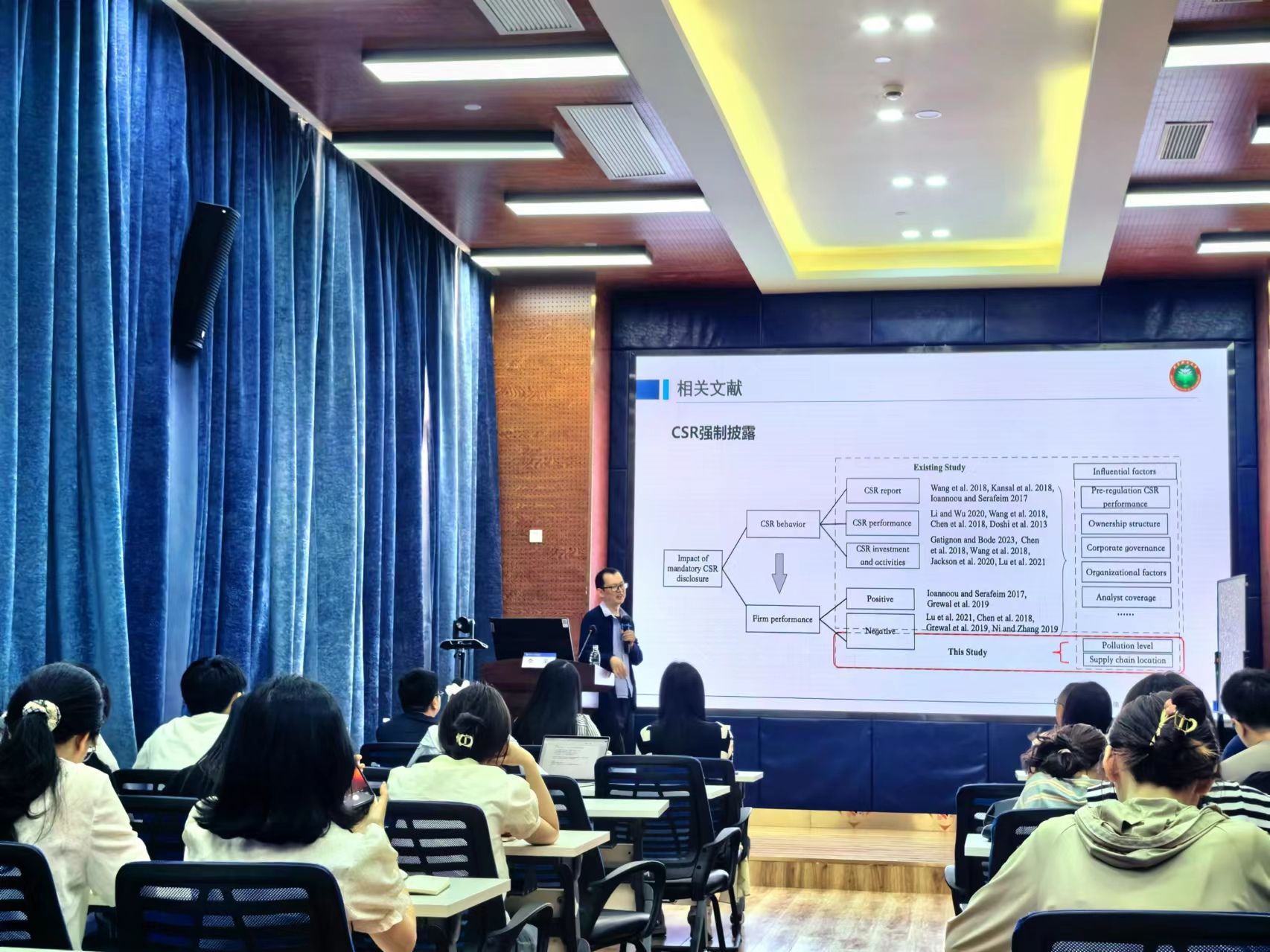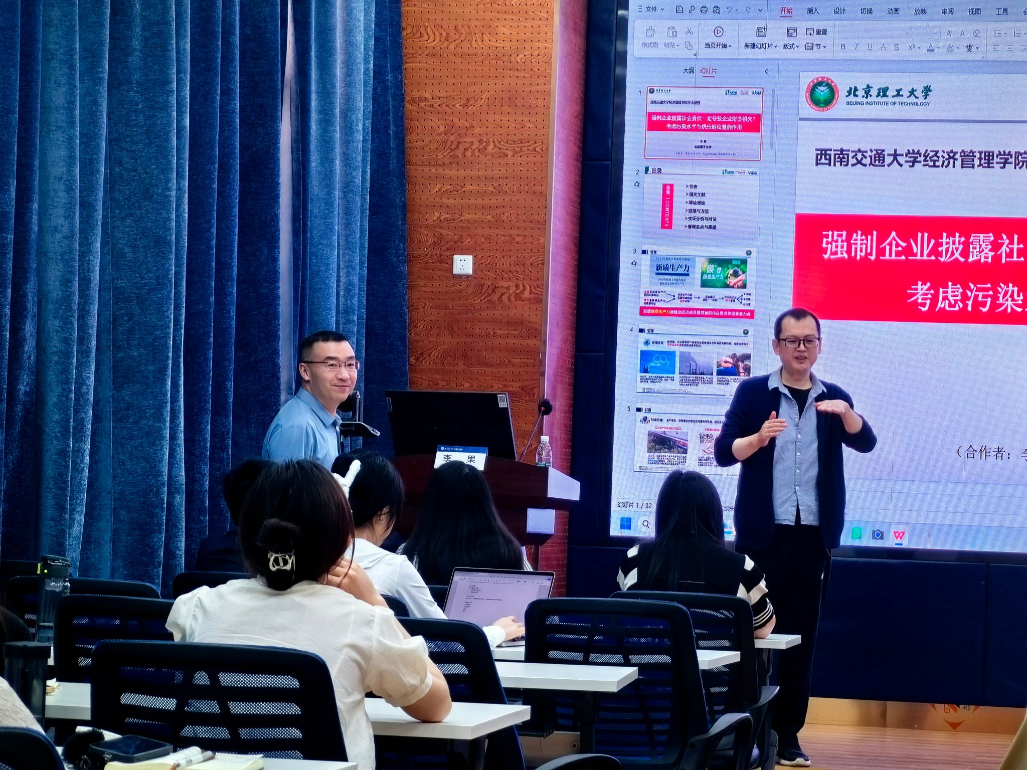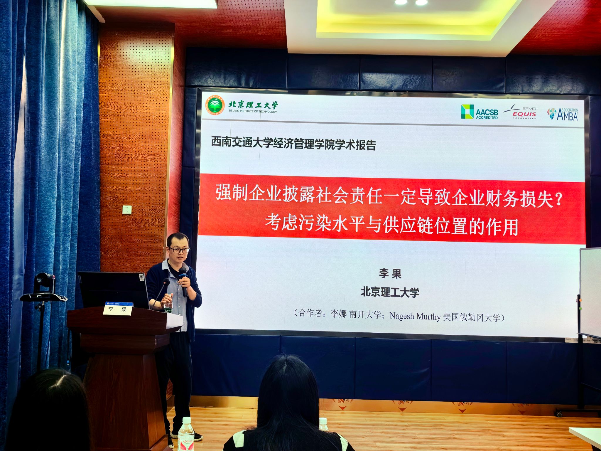 2024年5月24日,北京理工大学管理与经济学院管理科学与物流系主任,国家高层次人才计划入选者李果教授应学院邀请,来永利集团官网展开学术交流活动,交流主题为“强制企业披露社会责任一定导致企业财务损失?考虑污染水平与供应链位置的作用”。本次学术活动由学院副院长聂佳佳教授主持,学院部分教师、博士生和硕士生等50多人参加了此次学术活动。聂佳佳教授首先对李果教授的学术成果进行了介绍,同时对李果教授的来访表示热烈的欢迎!