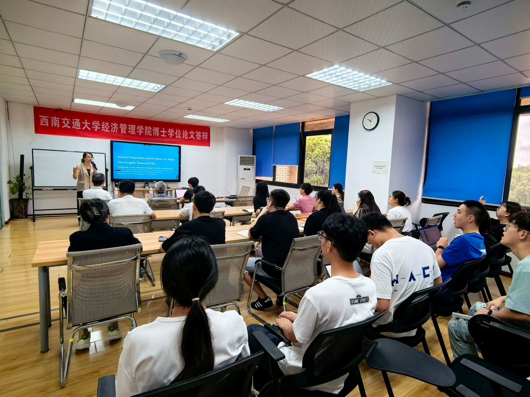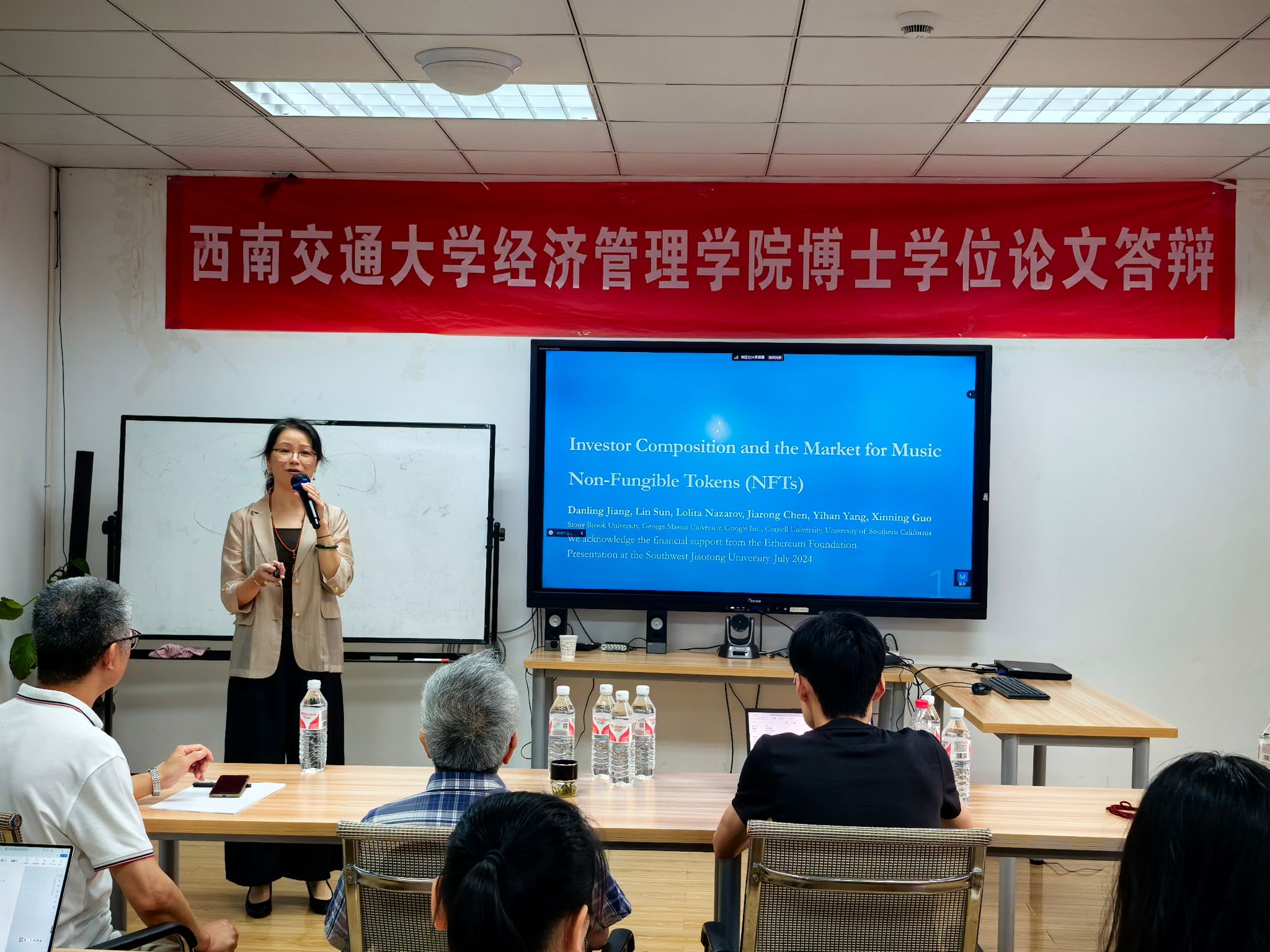 2024年7月8日上午,美国纽约州立大学石溪分校教授、402永利集团官网入口兼职教授蒋丹凌教授应邀在402永利集团官网入口开展题为“Investor Composition and the Market for Music Non-Fungible Tokens (NFTS)”的学术报告,马锋副院长主持了此次学术活动,学院金融与财务学系黄登仕教授、朱宏泉教授等教师及研究生参加了此次活动,马锋副院长介绍了蒋丹凌教授的学术背景及研究成果,并对蒋丹凌教授回校表示热烈的欢迎。