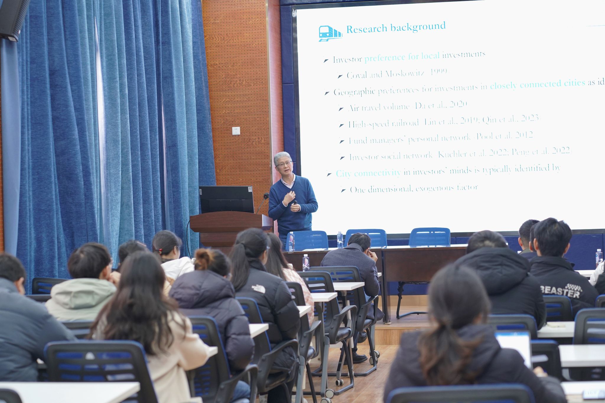 2025年1月13日,在402永利集团官网入口九里校区402永利集团官网入口举办了师道永传,匠心筑梦——资深教师系列讲座,本次讲座特邀学院的朱宏泉教授作为主讲嘉宾,围绕“Intercity Mentioning: Stock Posts, City Network, and Firms(城际提及:股市帖子、城市网络与企业)”这一主题展开。本次学术活动由金融与财务学系主任董大勇教授主持,董大勇教授向与会者介绍了朱宏泉教授的学术背景及其在该领域的贡献,并对朱教授的分享表达了诚挚地感谢。