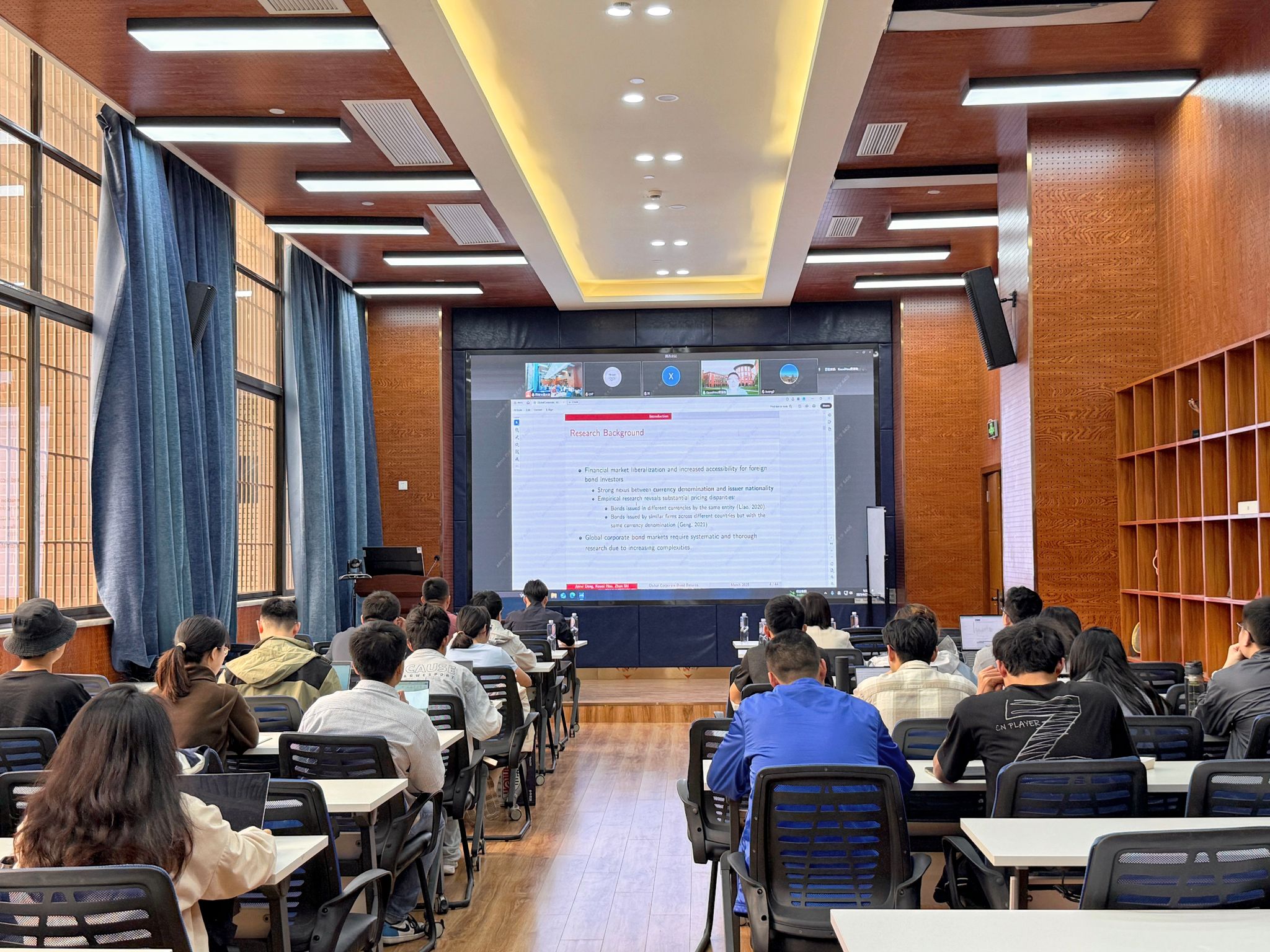 在随后的互动环节中,侯教授与师生们就债券发行特征、国别差异及模型设定等问题展开了深入交流。他结合自身丰富的研究经验,分享了在国际学术期刊投稿方面的宝贵心得,现场气氛活跃,反响热烈。