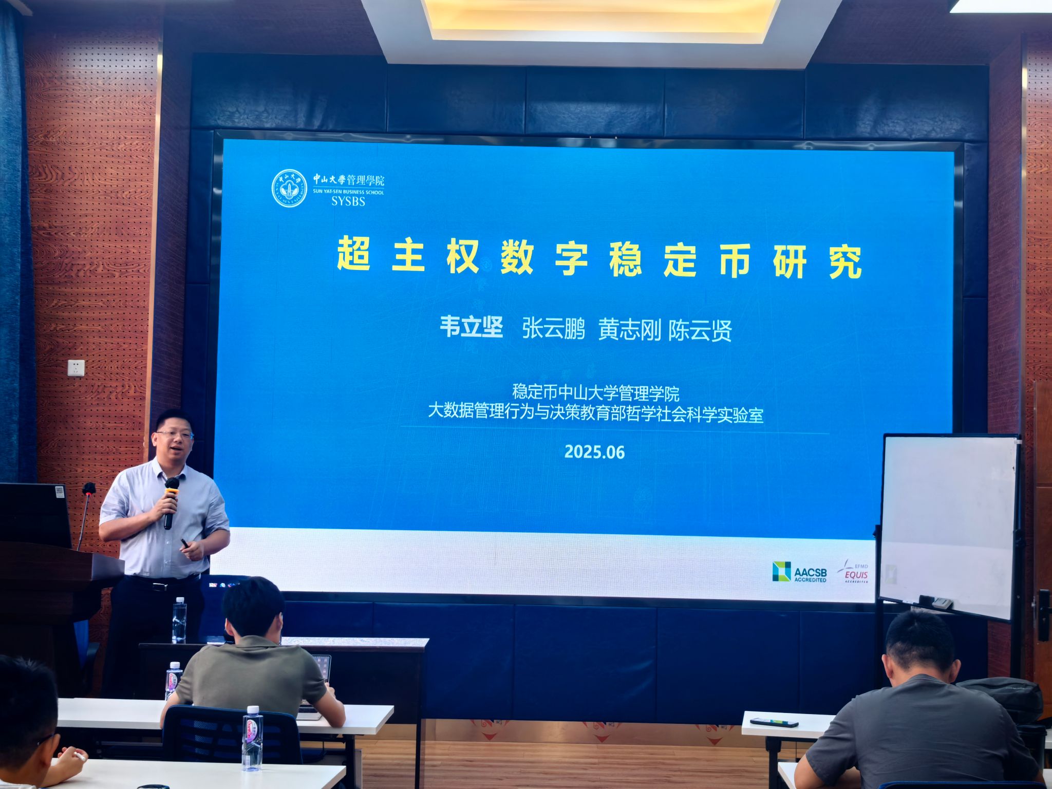 2025年6月10日上午,中山大学管理学院韦立坚教授应邀为永利集团官网师生带来一场题为“超主权数字稳定币研究”的学术讲座。本次学术活动由402永利集团官网入口副院长马锋教授主持,学院部分教师及研究生参加了此次活动。马锋副院长首先介绍了韦立坚教授的学术背景与成就,并代表学院对韦立坚教授表示热烈的欢迎与诚挚的感谢。