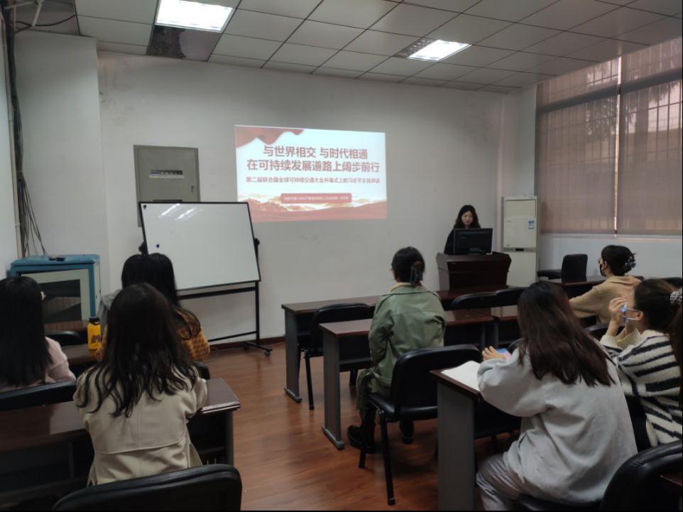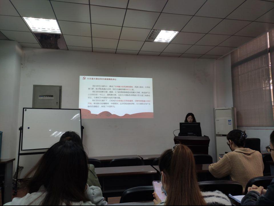 第二届联合国全球可持续交通大会于2021年10月14日至16日以线上线下相结合方式在北京举行。10月14日晚,国家主席习近平以视频方式出席第二届联合国全球可持续交通大会开幕式并发表题为《与世界相交 与时代相通 在可持续发展道路上阔步前行》的主旨讲话。2021年10月21日14时,402永利集团官网入口硕士2020级第一党支部在九里校区0217教室,开展了“习近平主席在第二届联合国全球可持续交通大会开幕式上的主旨讲话”的专题学习。本次会议由支部内的魏倩倩同志进行主讲,支部内15名党员参与活动。