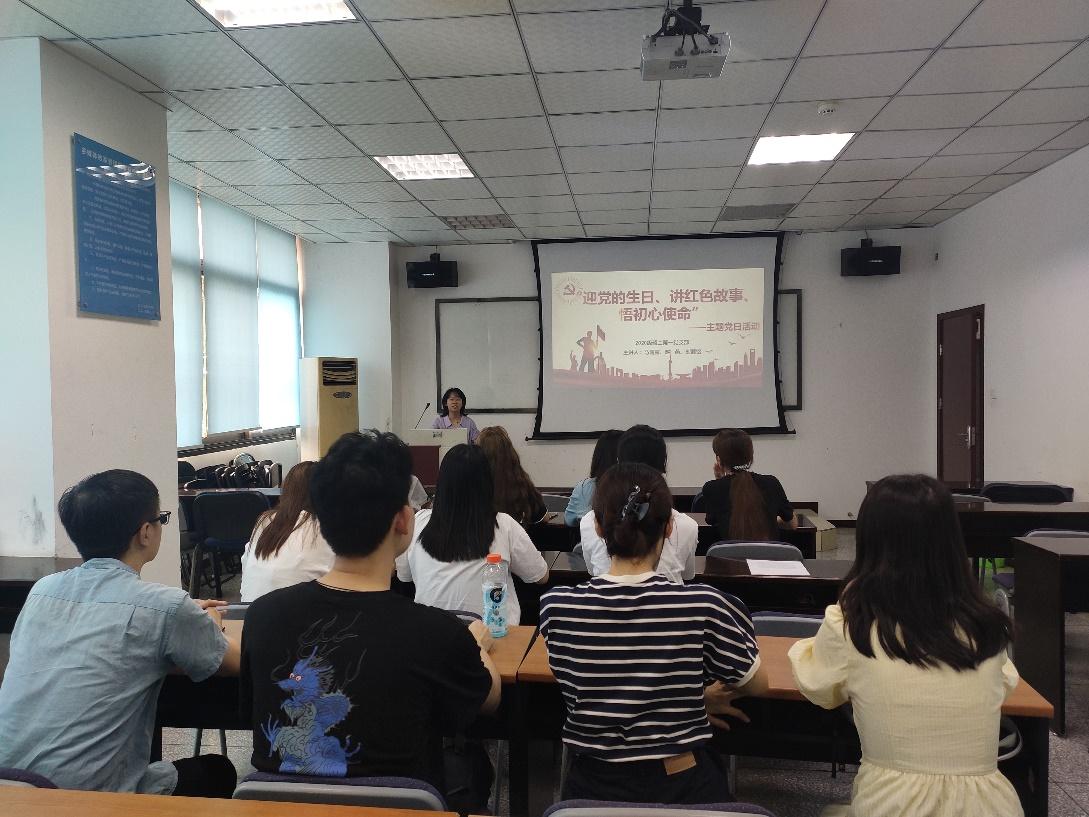 2021年7月1日(星期四)15时00分,402永利集团官网入口硕士2020级第一党支部在九里校区0317教室,开展“迎党的生日、讲红色故事、悟初心使命”主题党日活动。本次党日活动由支部书记马露露同志主持,由支委马露露、赵燕、刘茜铭同志三位同志主讲。