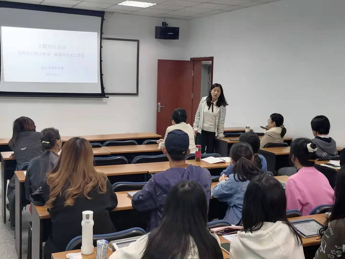 根据学校和学院党委开展“我为师生办实事”的通知,结合学院会计学专业学生毕业论文选题和撰写过程中出现的具体问题,2021年10月21日下午14:00,在402永利集团官网入口九里校区0316教室,会计学系党支部开展了“发挥党员带头作用,提高毕业论文质量”主题党日活动,学院党委委员、副院长周嘉南同志列席并指导本次主题党日活动。本次主题党日活动的目的在于“发挥党员带头作用,提高毕业论文质量”,具体内容包括会计论文选题、论文研究方法的选择、论文撰写规范、如何处理实习和毕业论文写作关系等。会计学系党支部八位党员教师和二十余位会计专业本科生、会计专业硕士研究生、会计学学术硕士研究生共同参与这次活动。