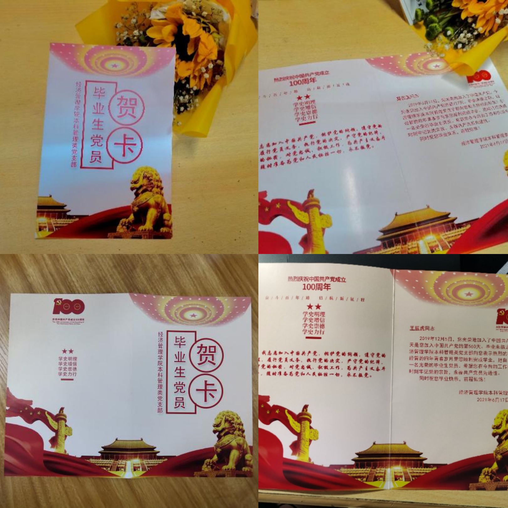 我是一张贺卡,如果你说我太普通常见了?那我可要和你好好说说。与其他贺卡不同的,我是被送给一群“特殊”的人——毕业生党员。
