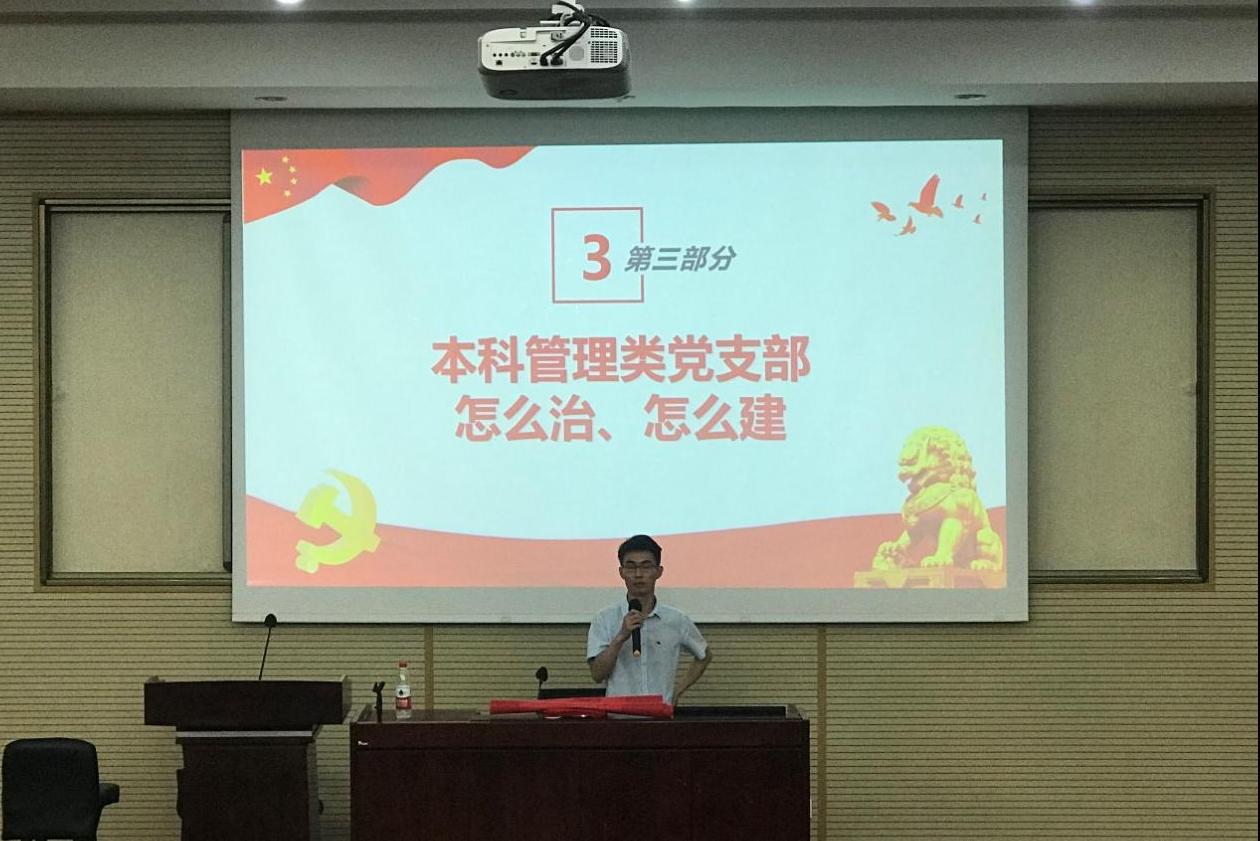 在学习完有关规章条例后,苏扬老师从支部组织建设概况、引领支部全面发展、构建人才培养体系三方面向在场的全体成员,特别是20级新一批入党积极分子系统详细地介绍了我们自己所在的党支部——402永利集团官网入口本科管理类党支部的治理体系和措施做法。