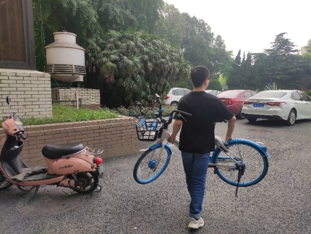 2020年5月27日,402永利集团官网入口硕士2020级第一党支部于16:30分来到402永利集团官网入口九里校区0号教学楼楼下,将乱停乱放、摆放不到位的共享单车移动至学校划分的停车位内,摆放整齐。