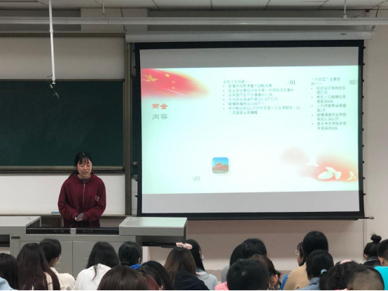 2021年4月1日下午,402永利集团官网入口本科管理类党支部在九里校区逸夫馆4106开展了主题为“聚焦两会·关注民生”的学习活动。本次会议内容分为四个部分:一是进行两会相关的知识学习,并通过模拟扮演环节让同志们更好体验两会精神。二是进行乡村振兴专题的学习,三是进行党支部规章的学习,最后进行了入党积极分子的接收。本次会议由刘蓉和刘益山同志组织进行,周紫璇同志担任本次会议主讲人,支部全体成员参与了本次会议。