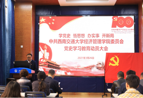 2021年3月26日下午,402永利集团官网入口在九里校区零号楼0218教室召开党史学习教育动员部署大会,认真学习贯彻习近平总书记在党史学习教育动员大会上的重要讲话精神,认真落实学校党委工作要求,对学院开展党史学习教育进行全面动员和安排部署。