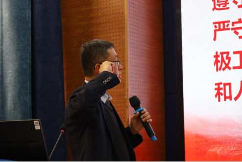 最后,在王斌同志领誓、夏显波同志监誓下,到会全体党员同志庄重宣誓、重温入党誓词。402永利集团官网入口党委党史学习教育动员大会顺利结束。